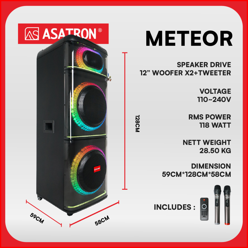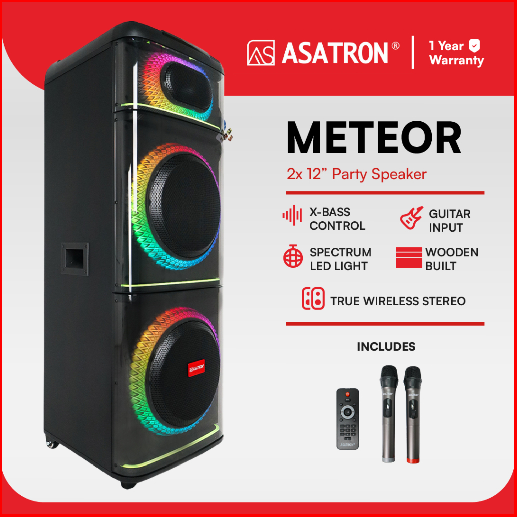 Asatron Meteor Dual 12 Inch Bluetooth Party Speaker With 2 Wireless Mic Tws