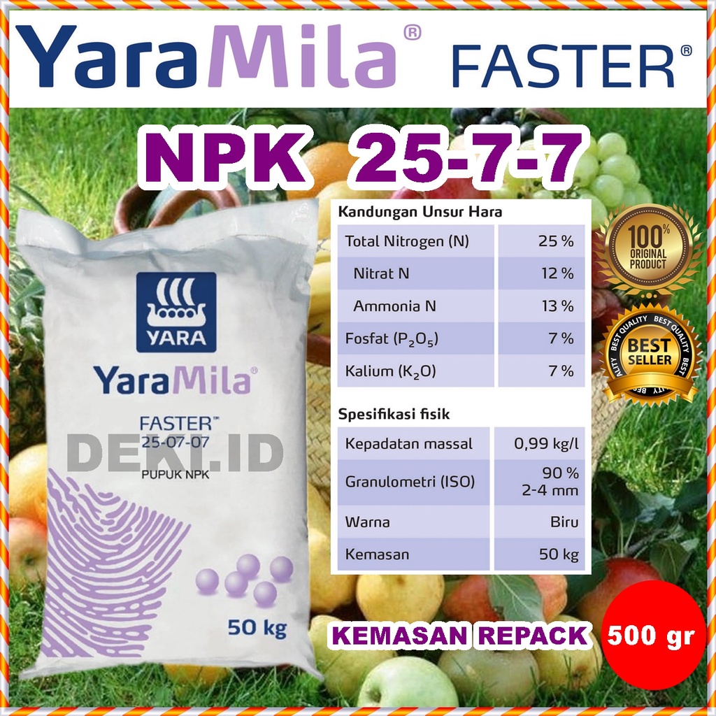 Pupuk NPK YaraMila Faster 25 7 7- 500 Gr Repack Nutrisi Fase Vegetatif Pertumbuhan Tanaman