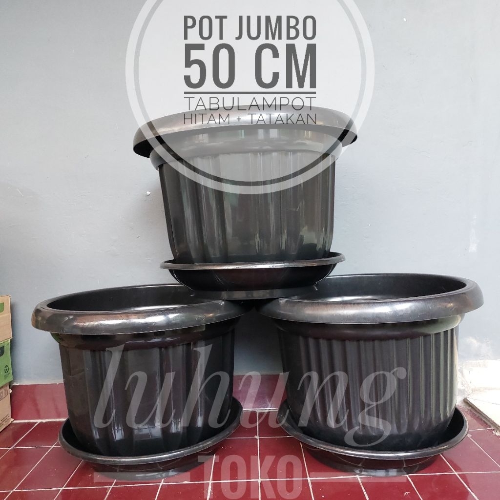 Pot Tanaman/bunga Jumbo 50 cm tabulampot buah anggur, jeruk, dll dengan tatakan motif variasi produk Indonesia
