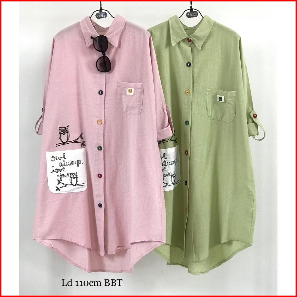 R.a - Owl Long Tunik Patch Pocket All Size Fit To Xl Besar Ootd Wanita Muslim Fashion Terlaris