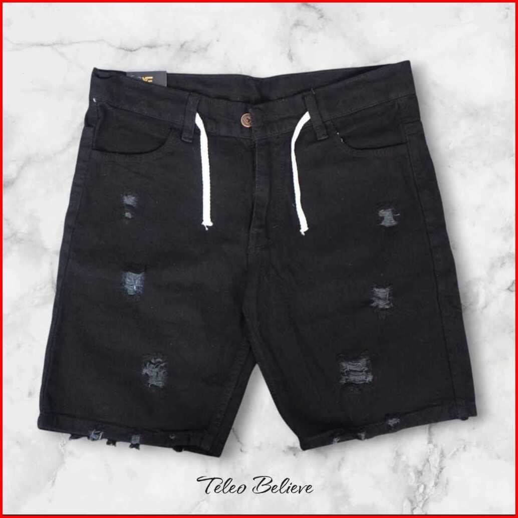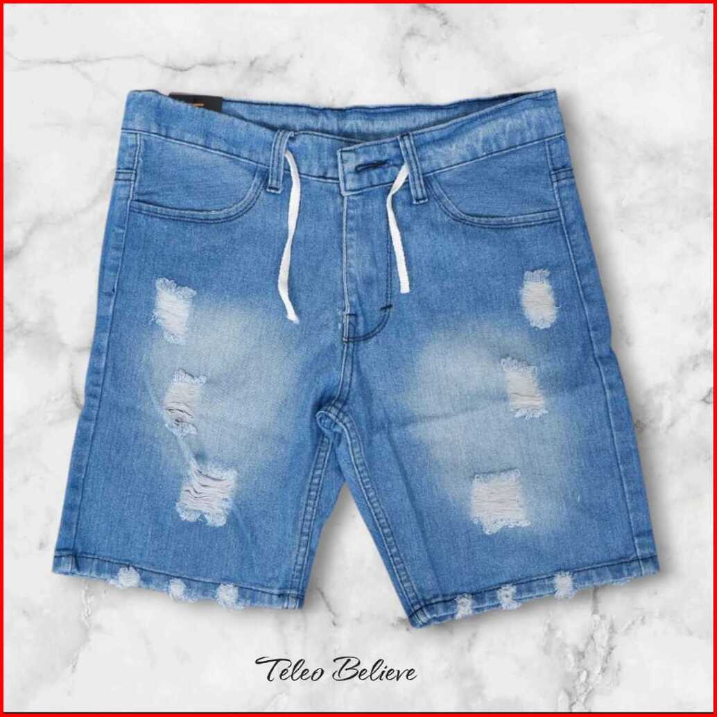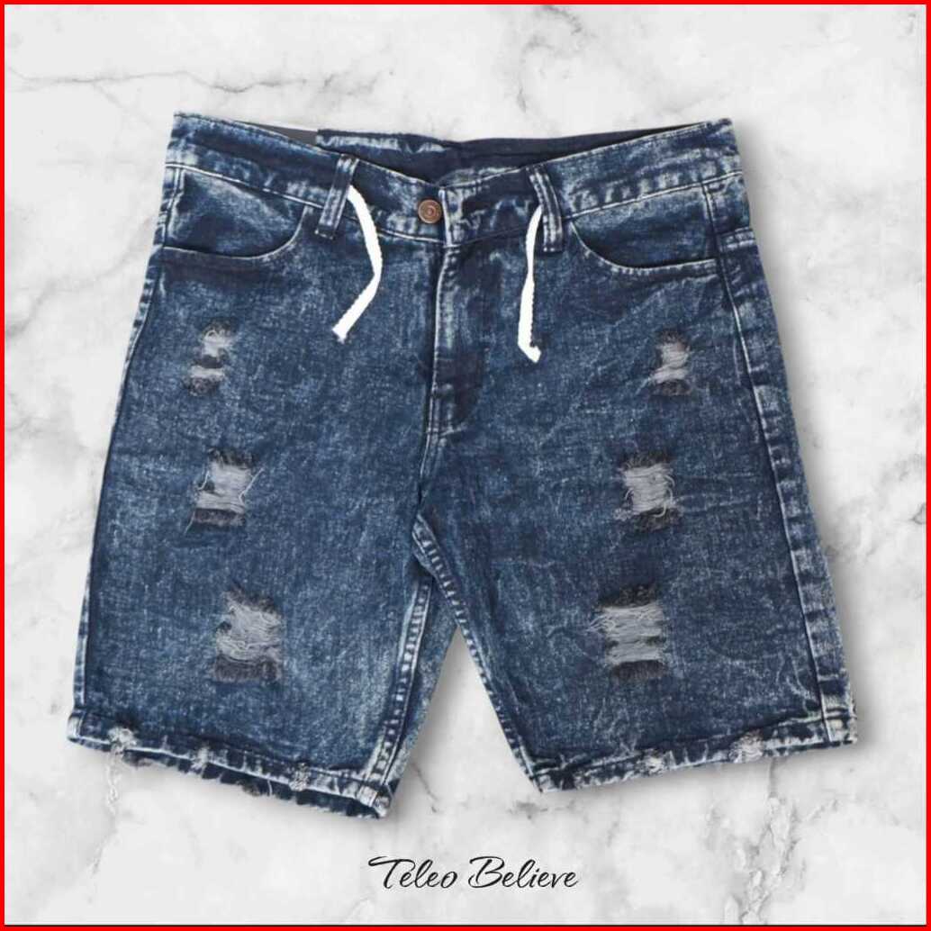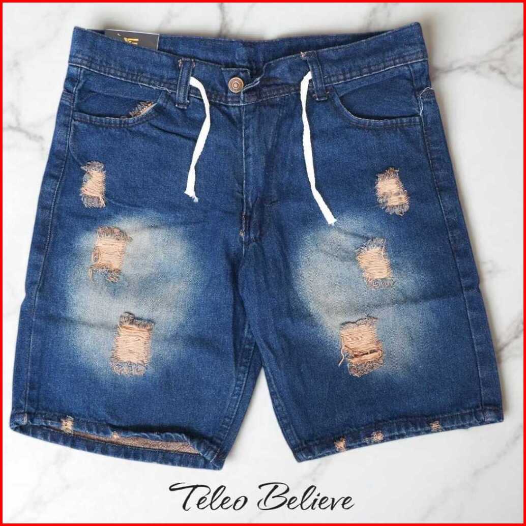 Celana Jeans Pendek Sobek Tali Kolor Rawis Celana Distro Pria Rawis