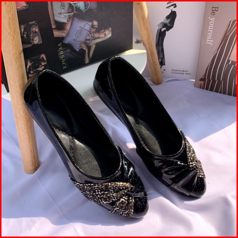 Nia - Flatshoes Kulit Sintetis N140 Warna Hitam Putih Pink Ukuran 37-40