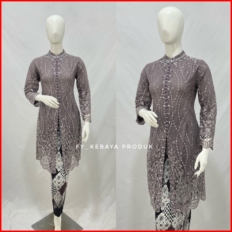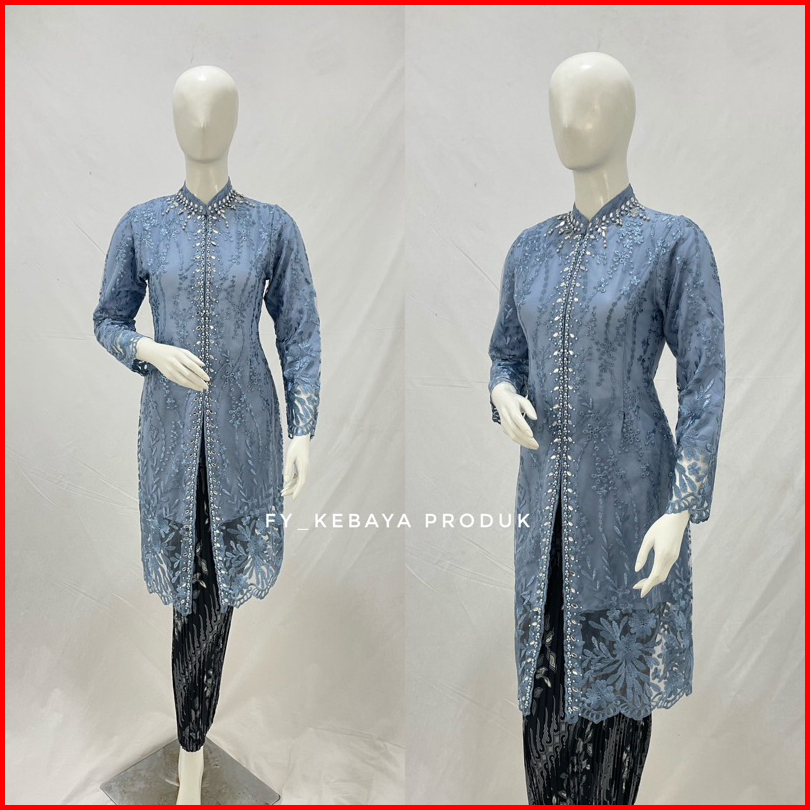 Kebaya Tunik Tille Kerah Sanghai Kebaya Tunik Modern Kombinasi Payet