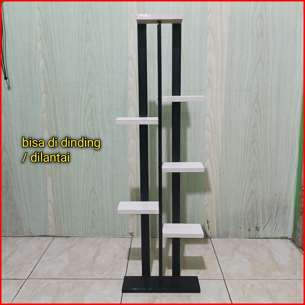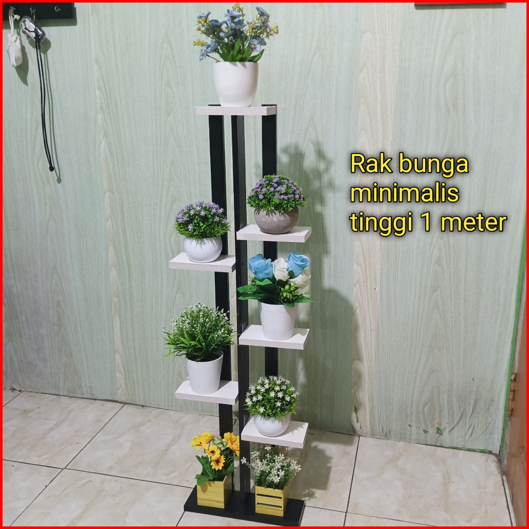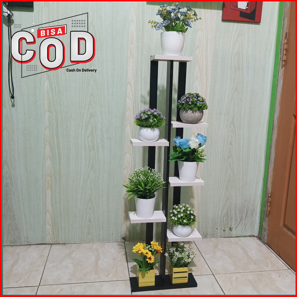 Rak Kayu Hias Tempat Bunga Miniatur Tinggi 1 Meter Hitam Putih - Harga Promo