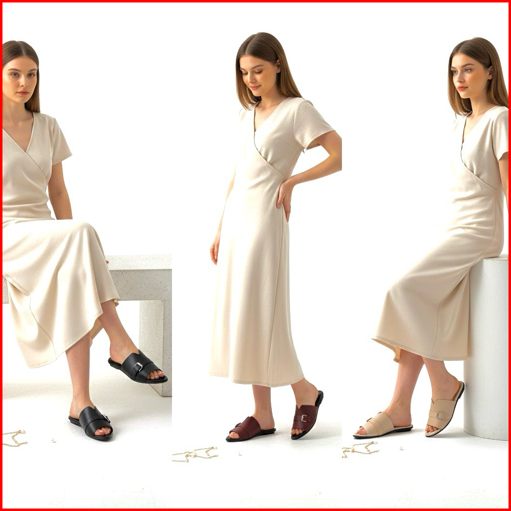 Y O L L A Sandal Flat Wanita Slop Lancip Terbaru