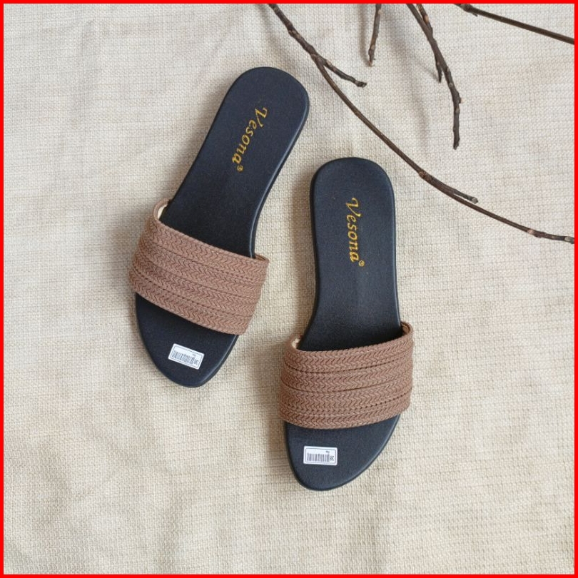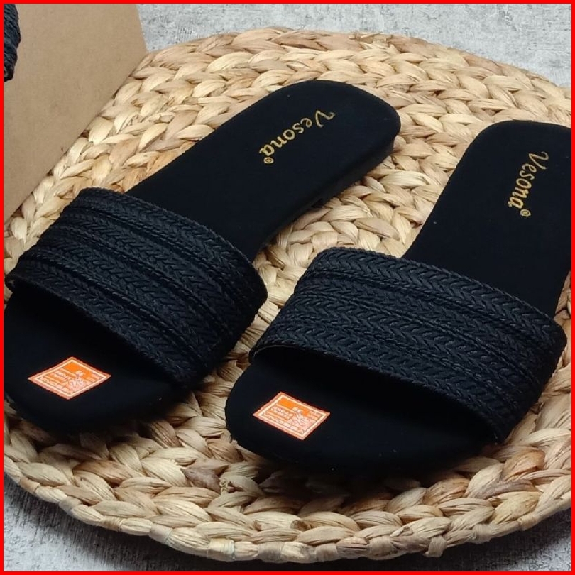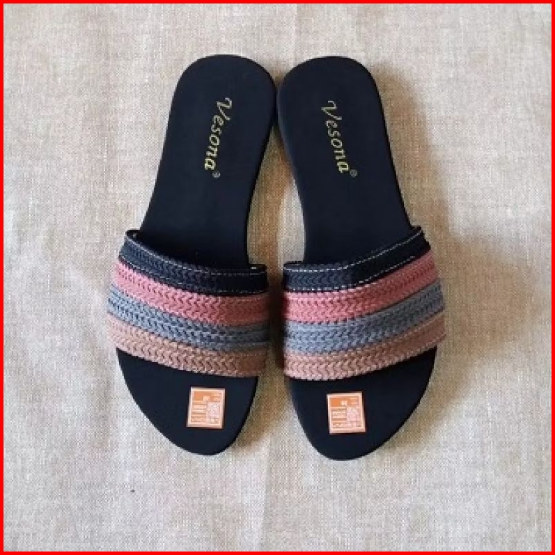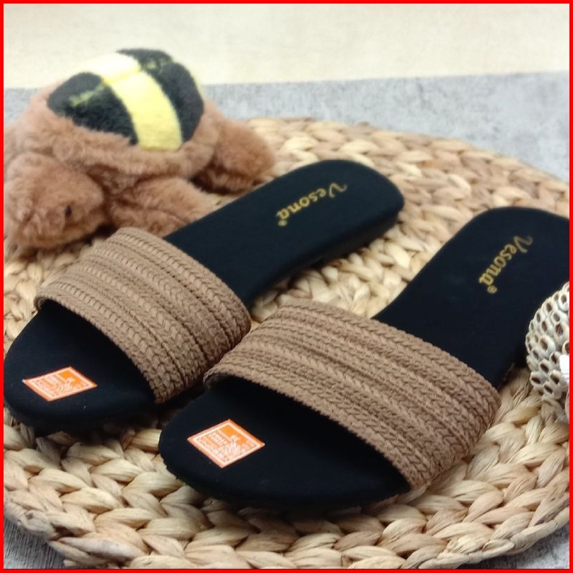 Sandal Flat Wanita Turky Rajut Big Size Kekinian