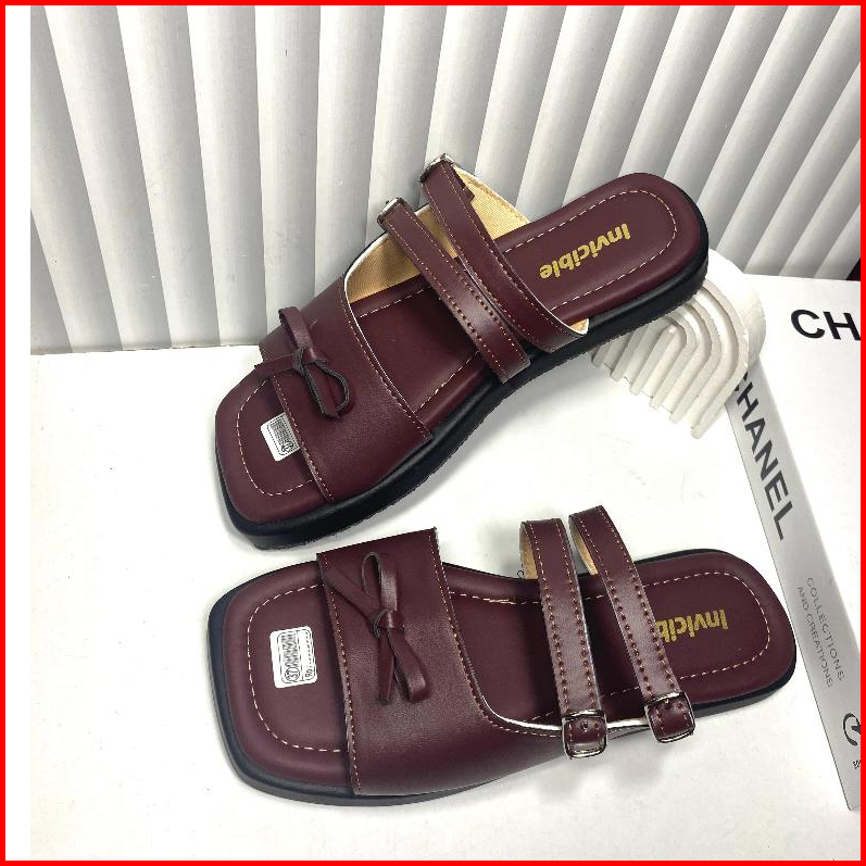 Sandal Wanita Kekinan Tali Pita Lucu Sandal Model Simpel Flat Soes
