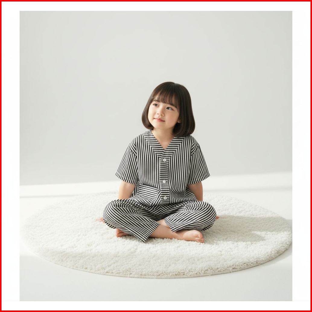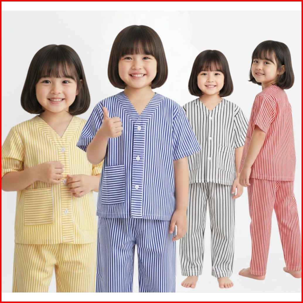 Set Piyama Anak Perempuan Laki-laki Garis Baju Tidur Katun Lembut Nyaman Dipakai