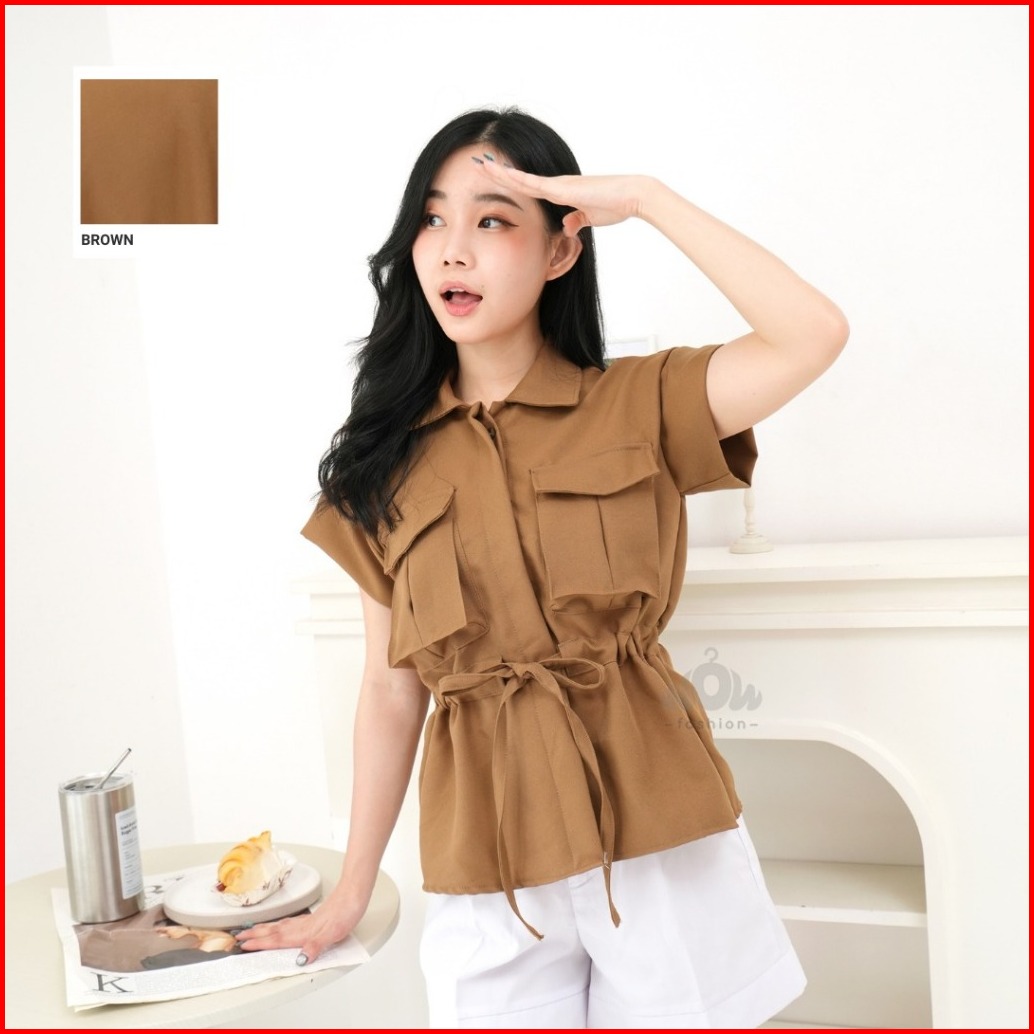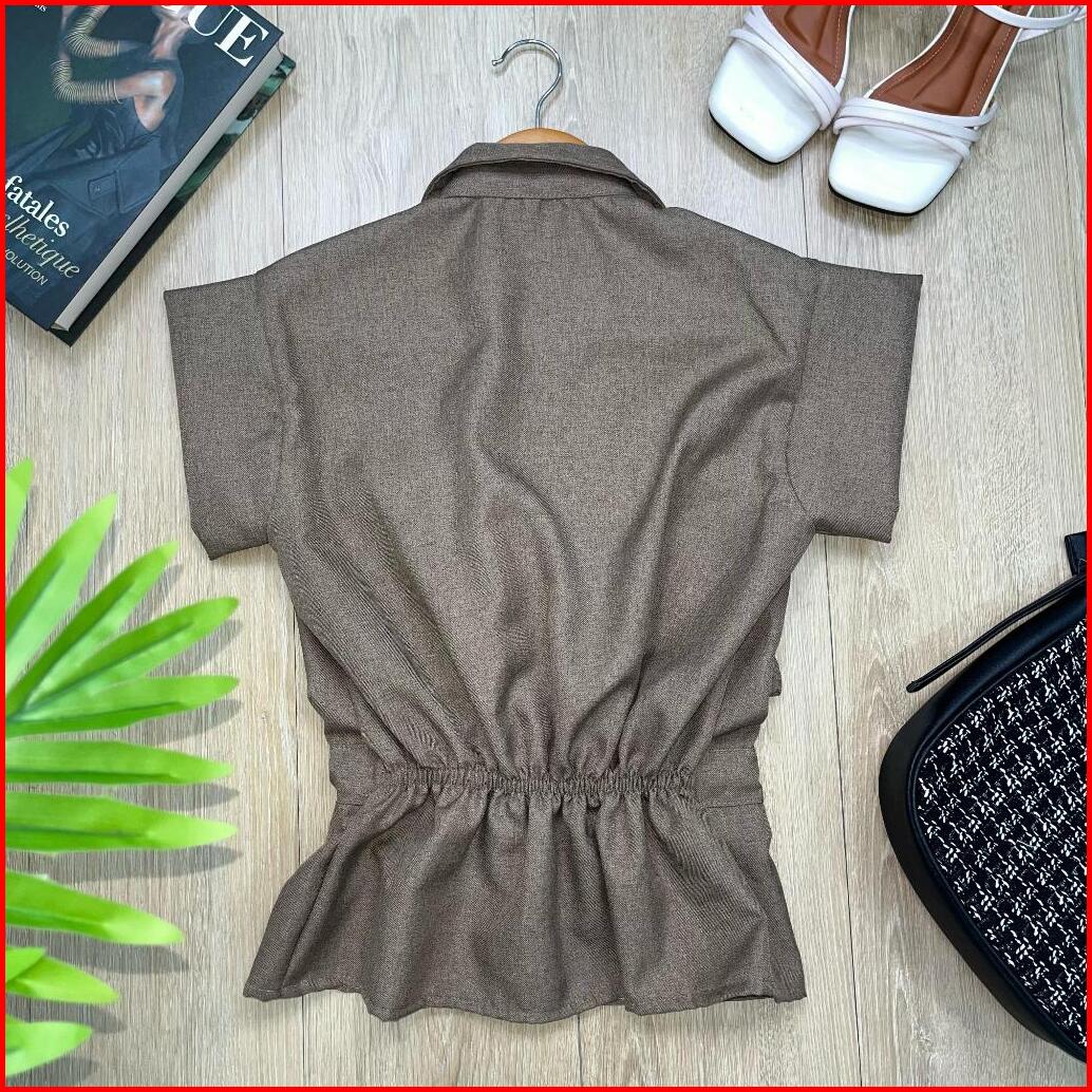 Wow-yuan Top Outer Tangan Pendek Kemeja Outer Top Semiwoll Atasan Wanita Terbaru