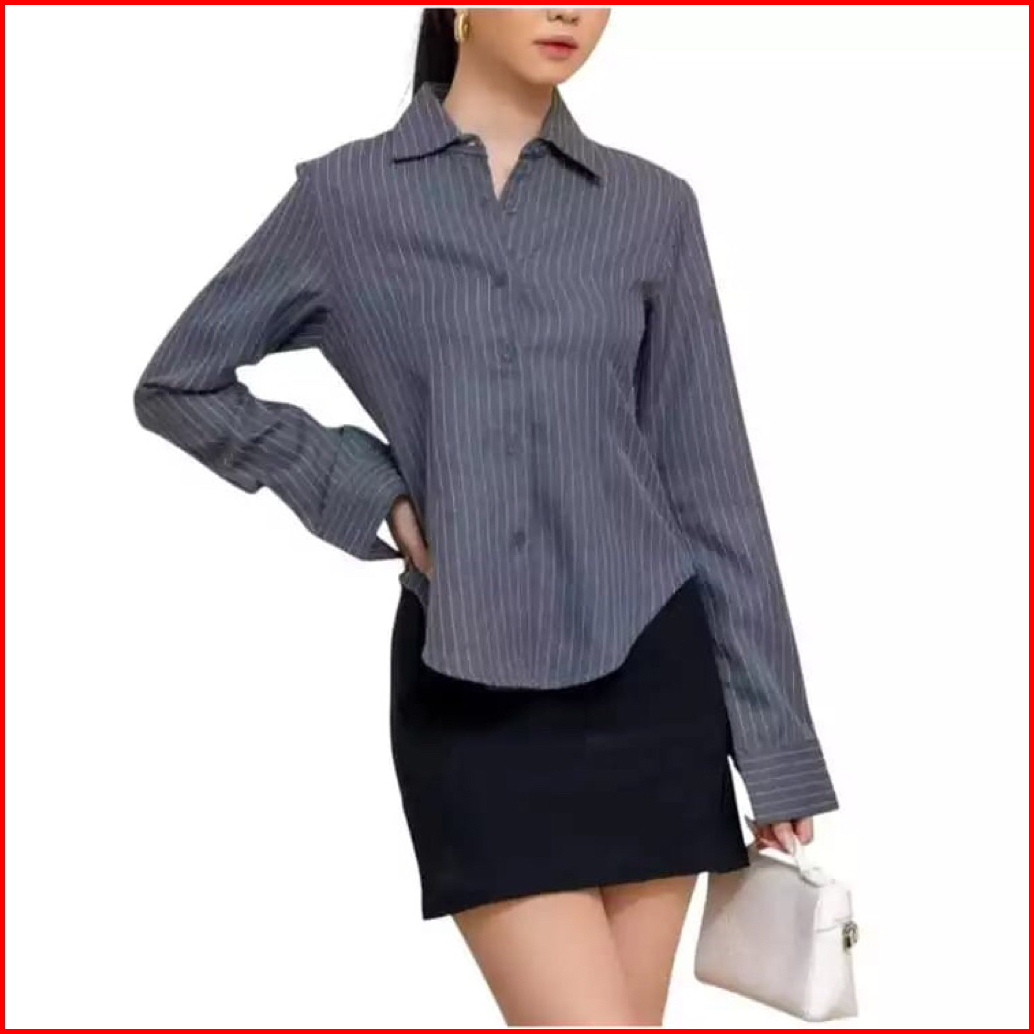Rs Luna Stripe Fitted Shirt Kemeja Wanita Atasan Wanita Stripe Salur Kekinian Kemeja Basic Lengan Panjang