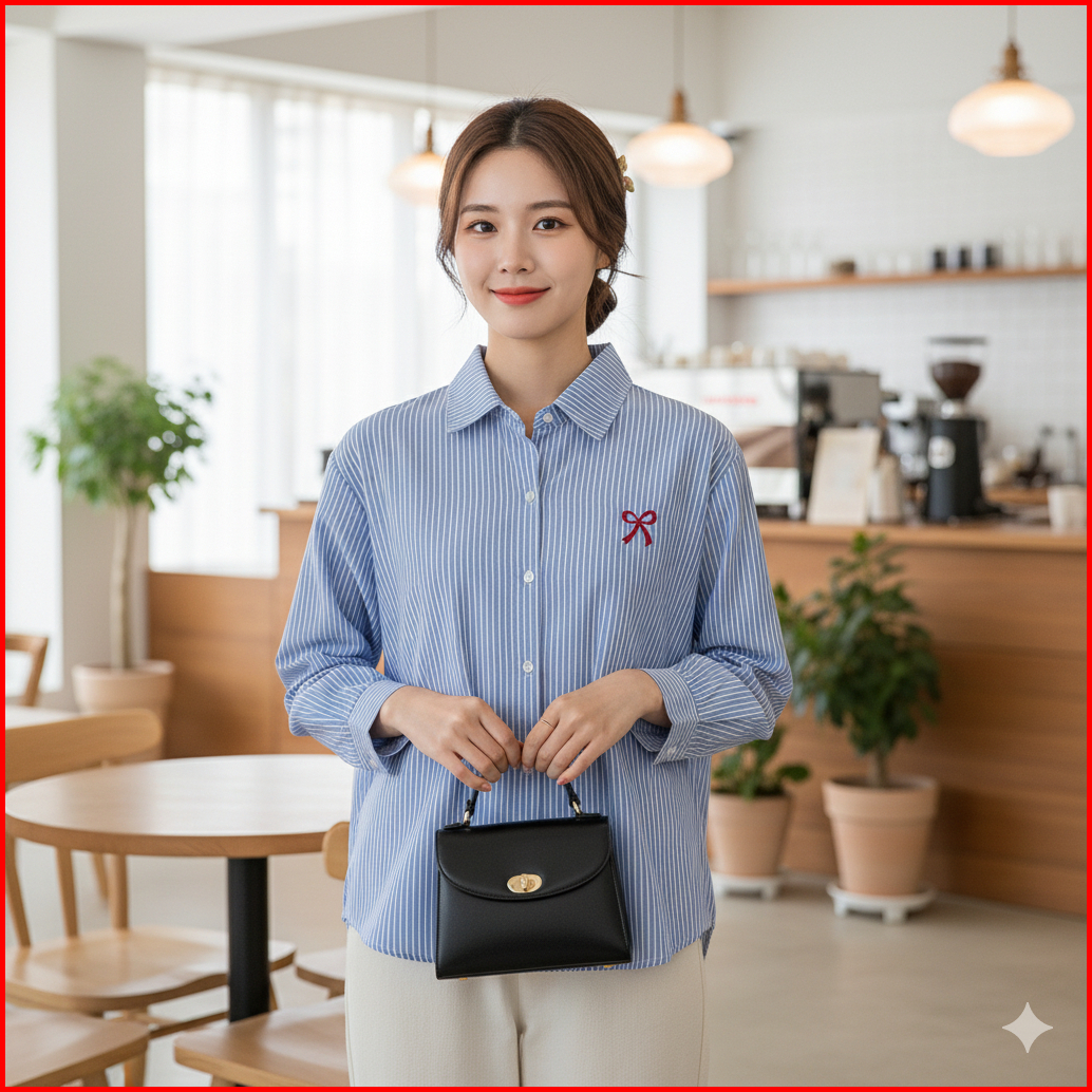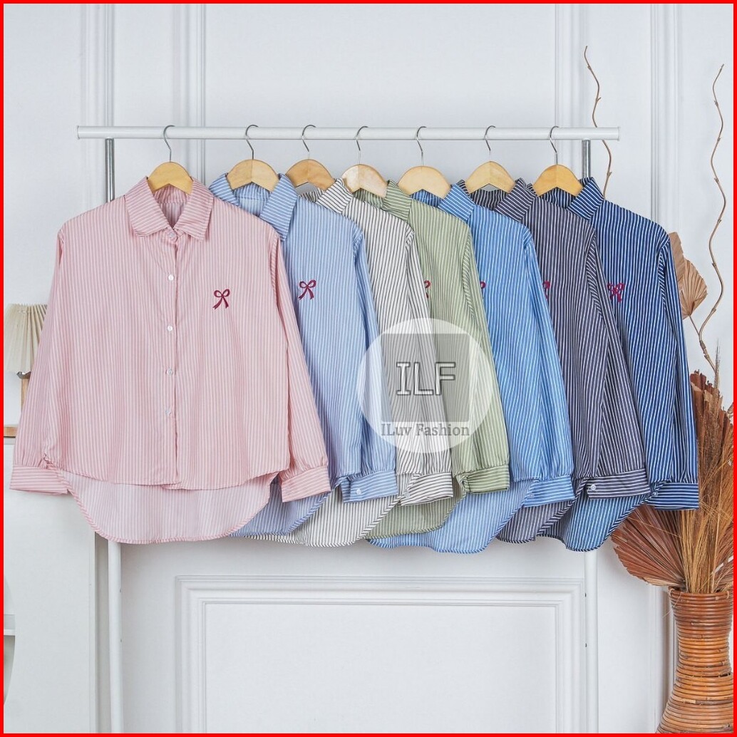 Il X Ainundiva - Ready Stock Kemeja Wanita Ribonia Salur Pita Bordir Katun Elegan