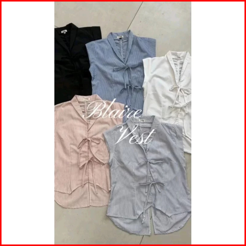 Blaire Kemeja Vest Atasan Blouse Pita Atasan Wanita Stripe By Lbs03.id