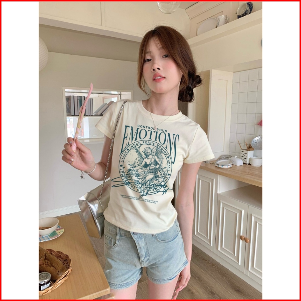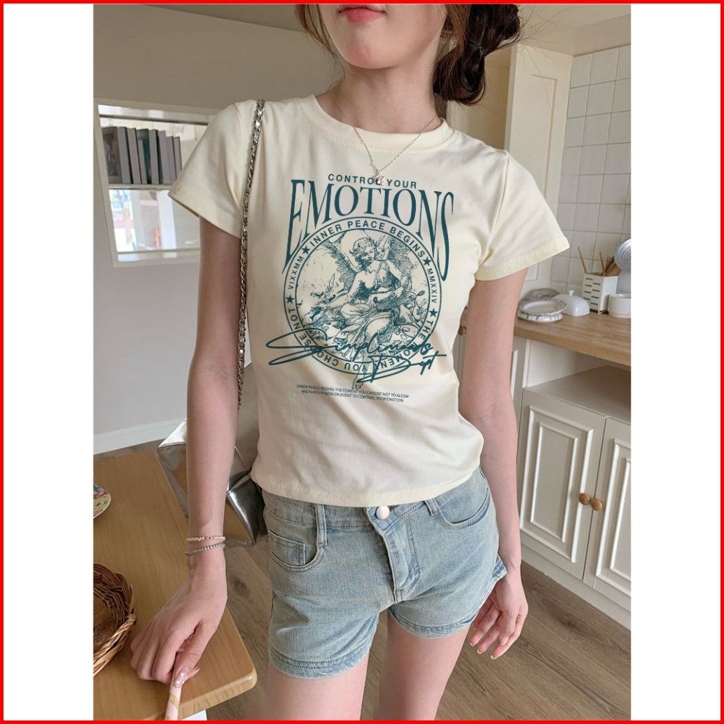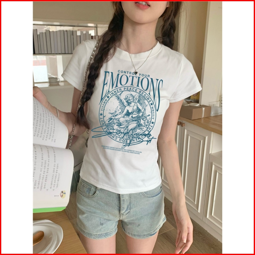 Auvra Perawan T-shirt Top Kapas Cetak Mode Bulat Kerah Pendek Musim Panas Tshirt Baju Croptee