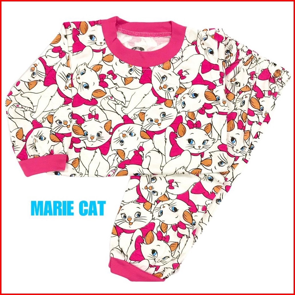 3s Yeya - Baju Tidur Anak Kids Piyama Pp Pajamas Bahan Kaos Katun Pp Putih Marie Cat Kucing