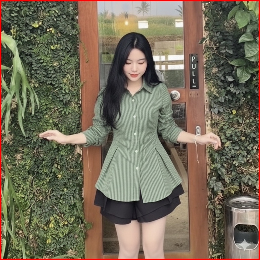 Need - Kemeja Stripe Rempel Fit Body Wanita Casual Daily Formal Salur Korean Look Fitted Shirt