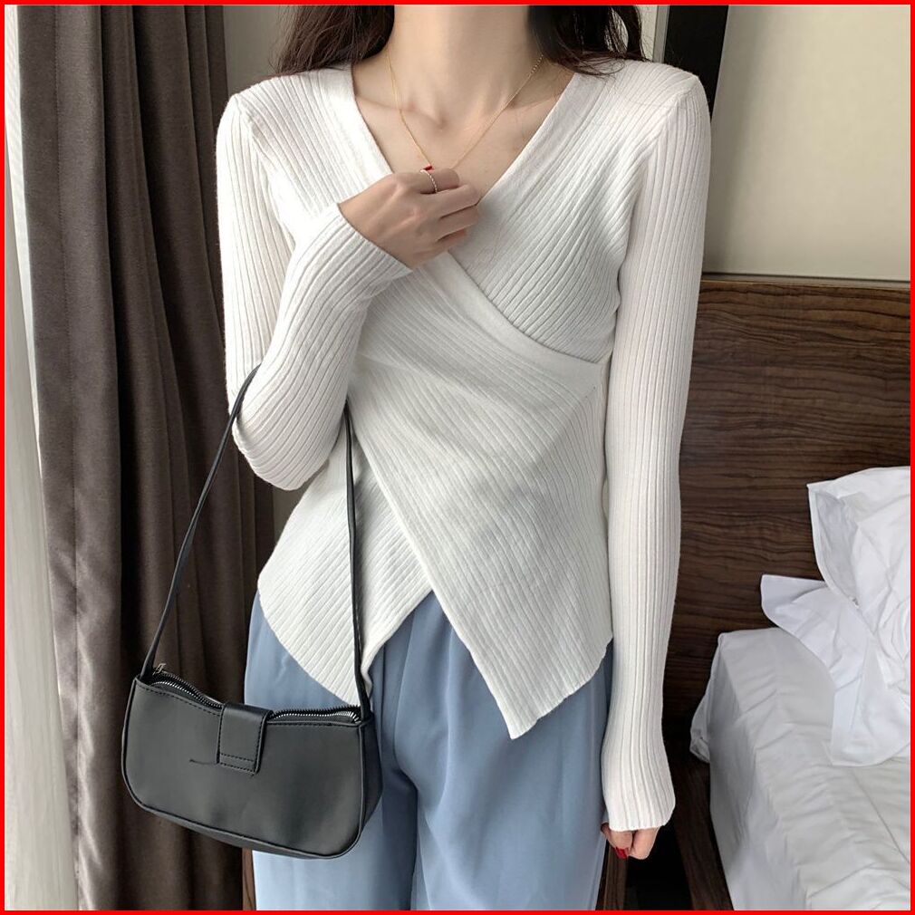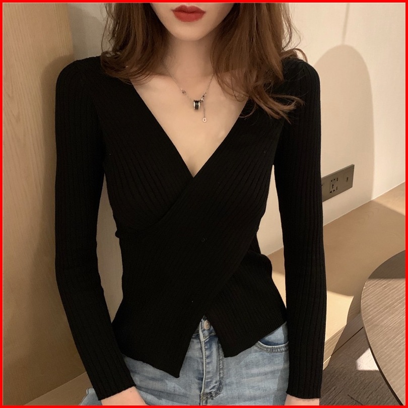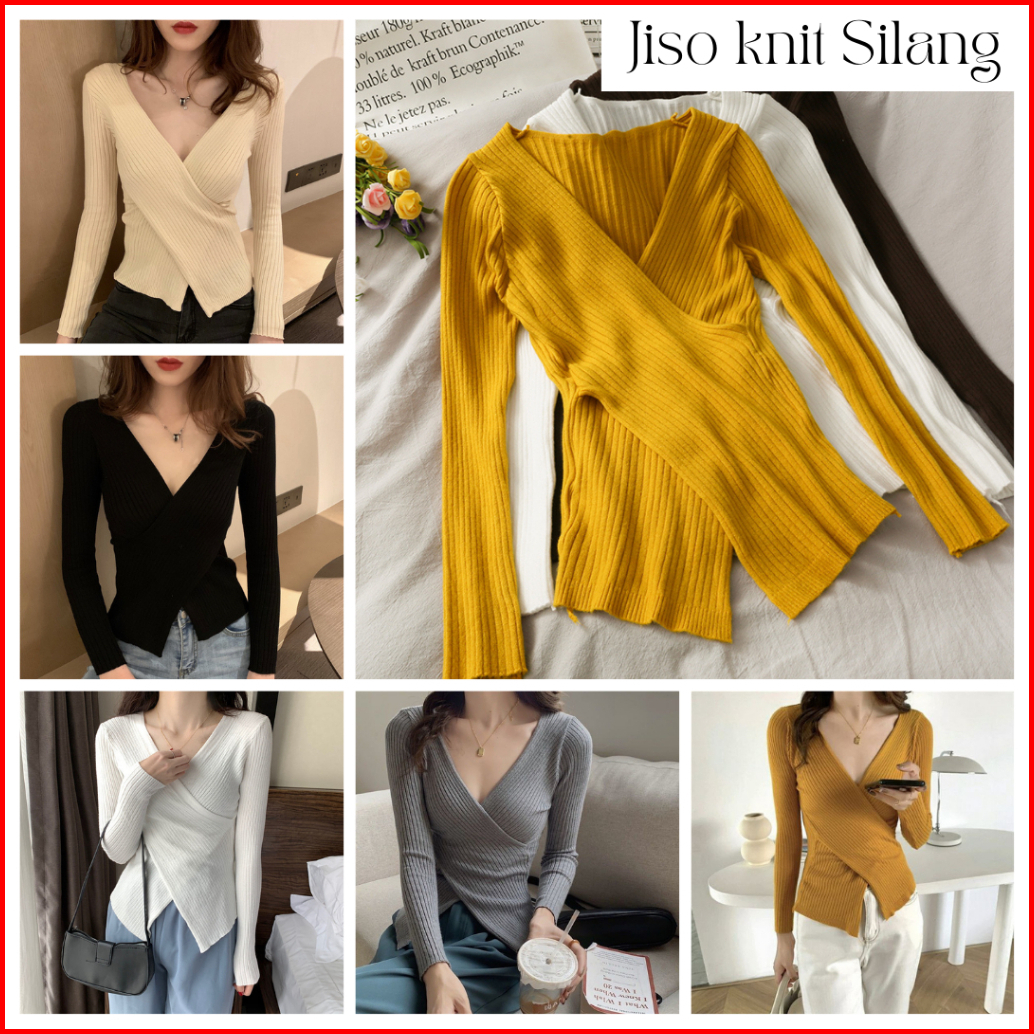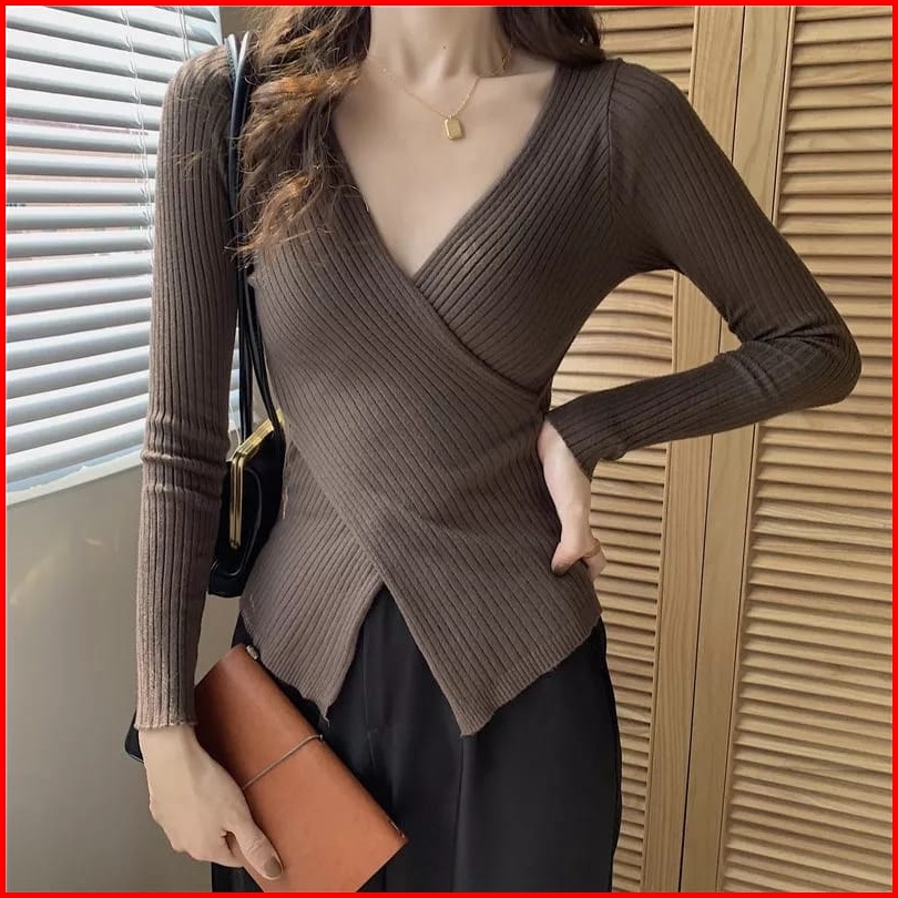 Atasan Rajut Jiso Knit Silang Korean Style Wrap Top V Neck