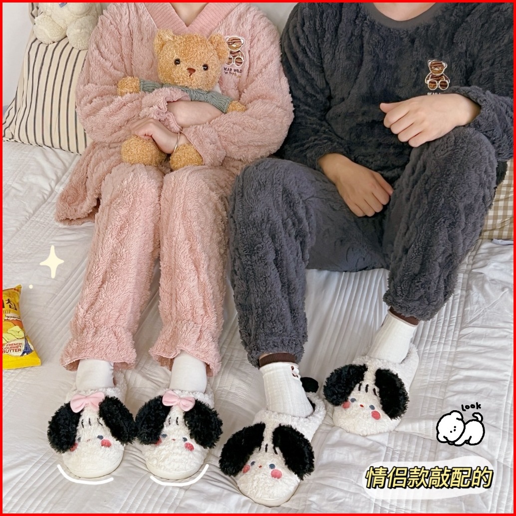 Sandal Bulu Rumah Anti Slip Motif Puppy Lucu Aesthetic Ins Korea Hangat Nyaman Lembut H003