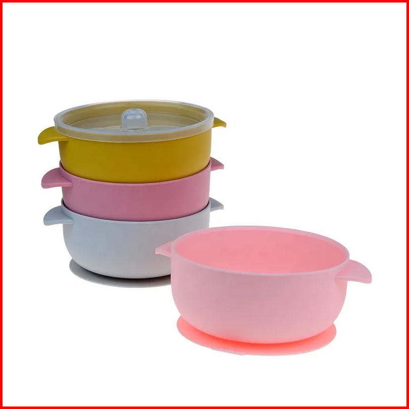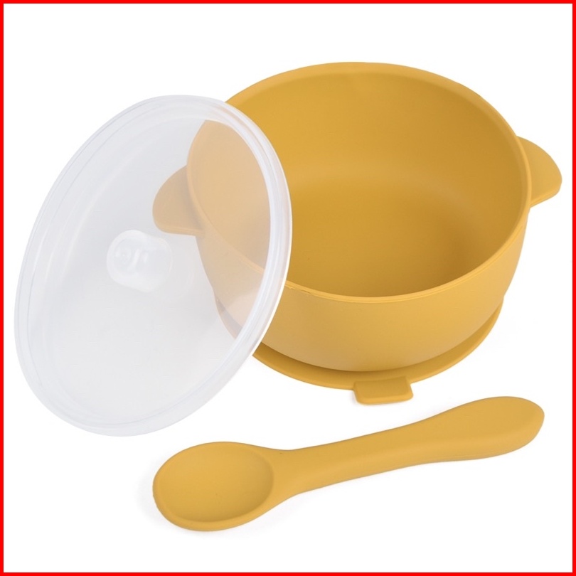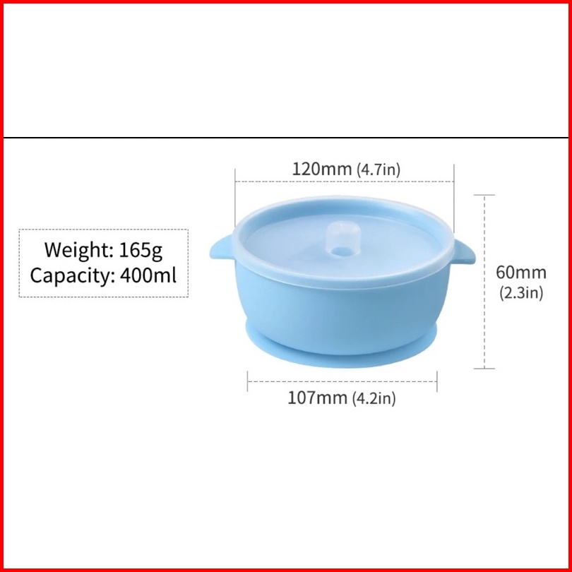 Silicon Baby Bowl 400ml With Suction Including Lid Spoon Mangkuk Makan Bayi Dengan Perekat Sudah Termasuk Tutup Dan Send