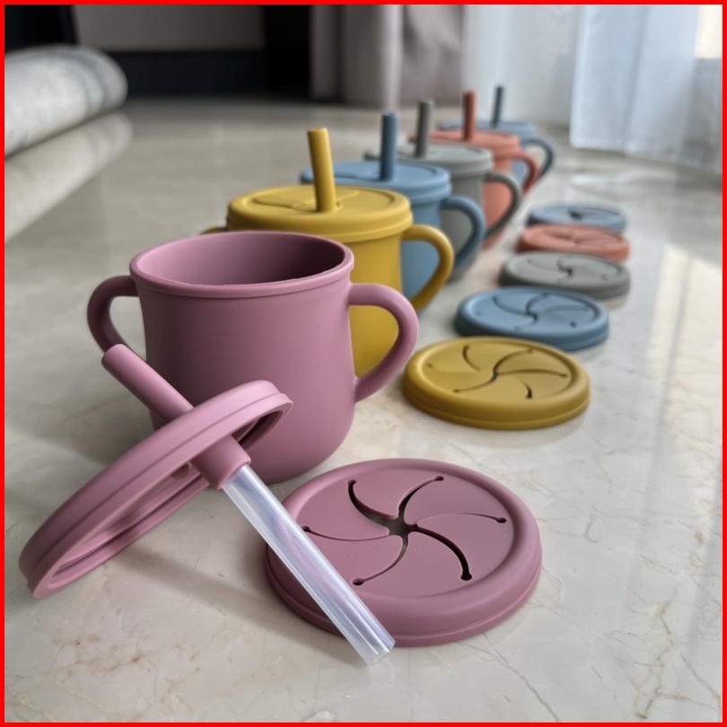 Silicone Sippy Snack Cup Gelas Silikon Bayi Dengan 2 Macam Tutup Untuk Minum Dan Snack Slc01