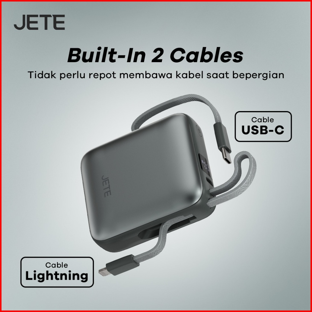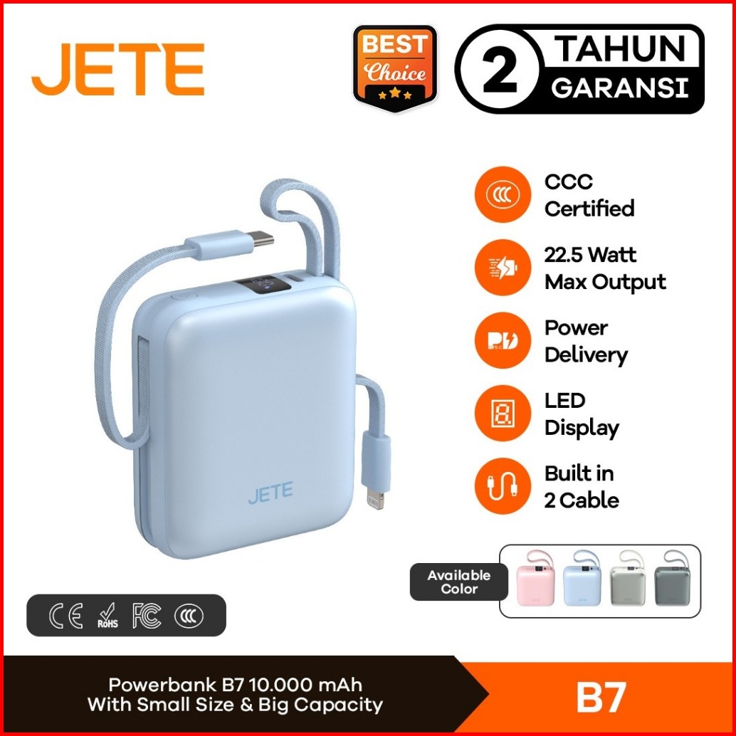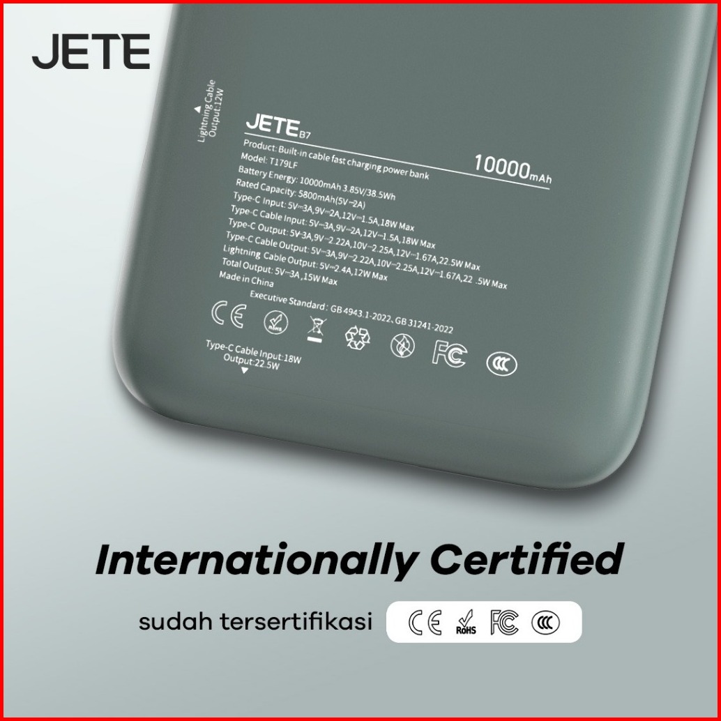 Tersertifikasi Ccc Jete B7 Powerbank 10000mah 22.5w Fast Charging With Led Display Dual Cable Usb C Lightning Power Bank