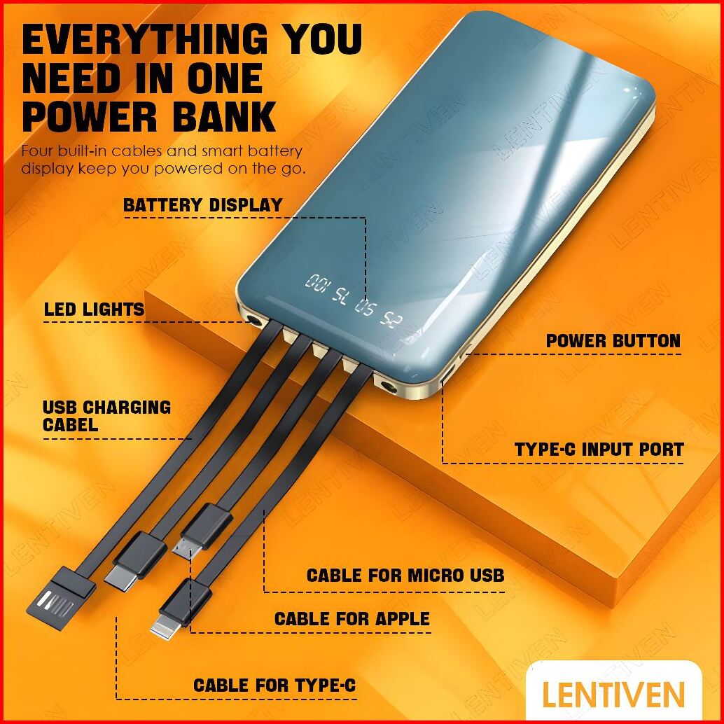 Luxian Lentiven Powerbank 50000 Mah Fast Charging Mini With 4 Kabel Data Usb Type C Micro