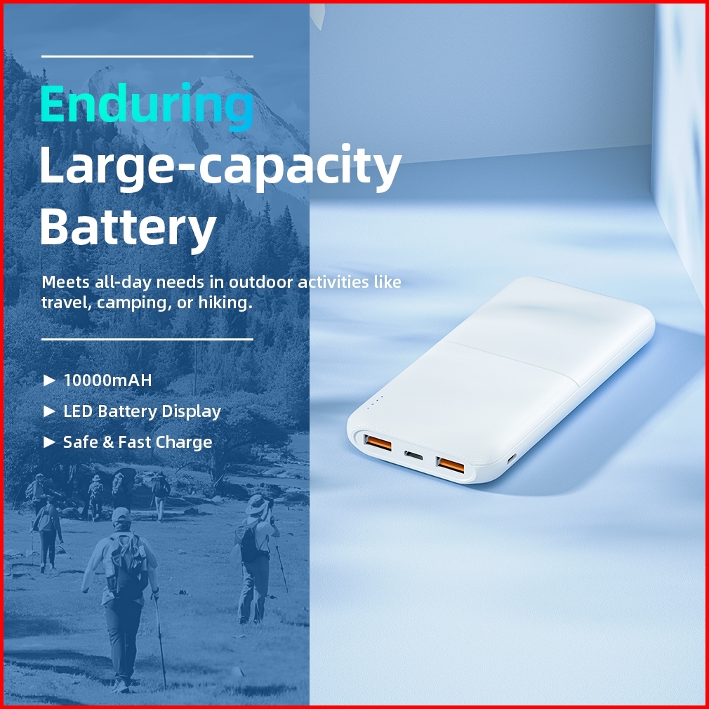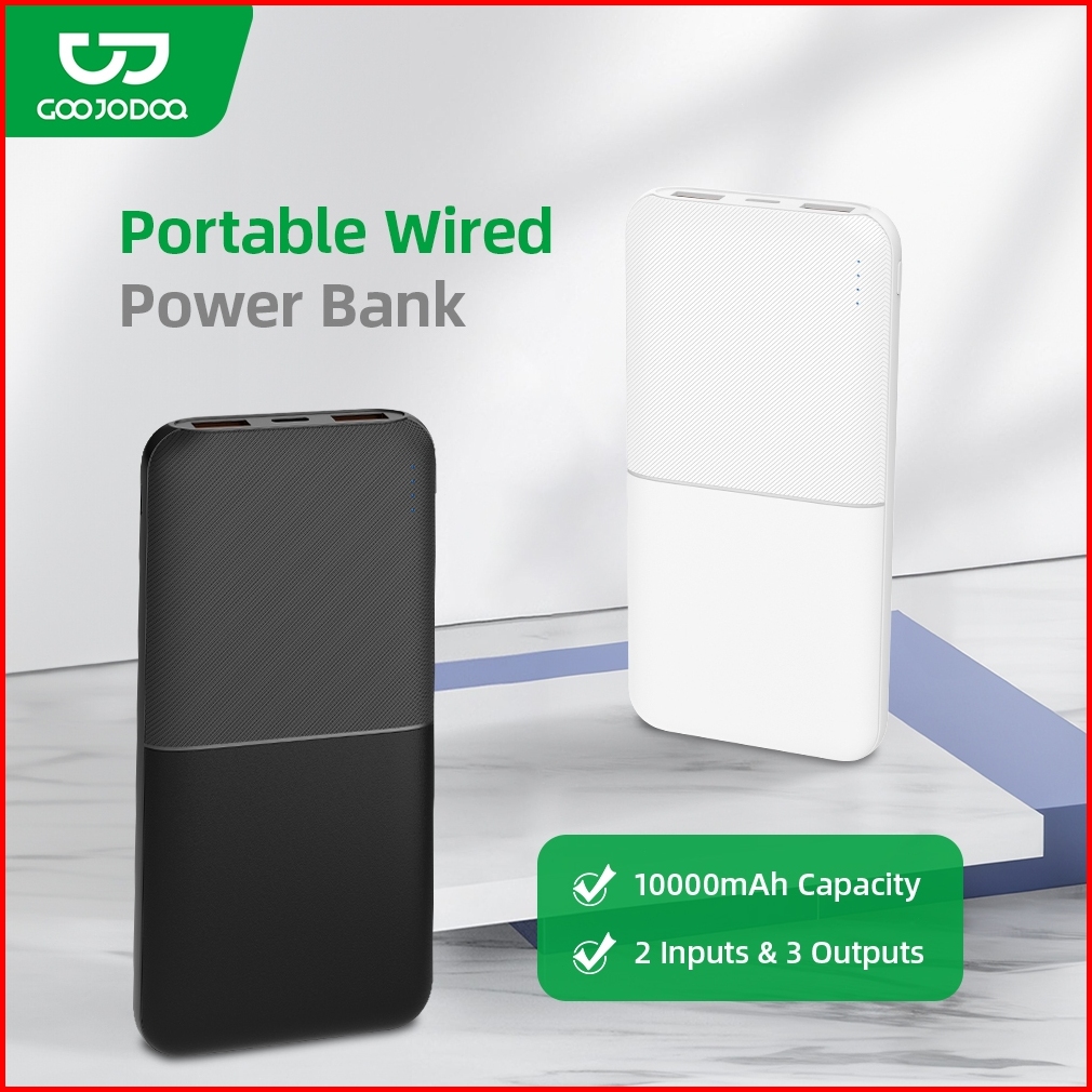 Goojodoq Powerbank 10000mah Original Fast Charge With Flashlight 2 Output
