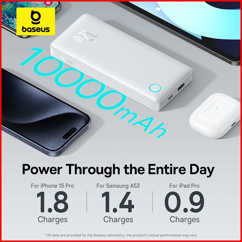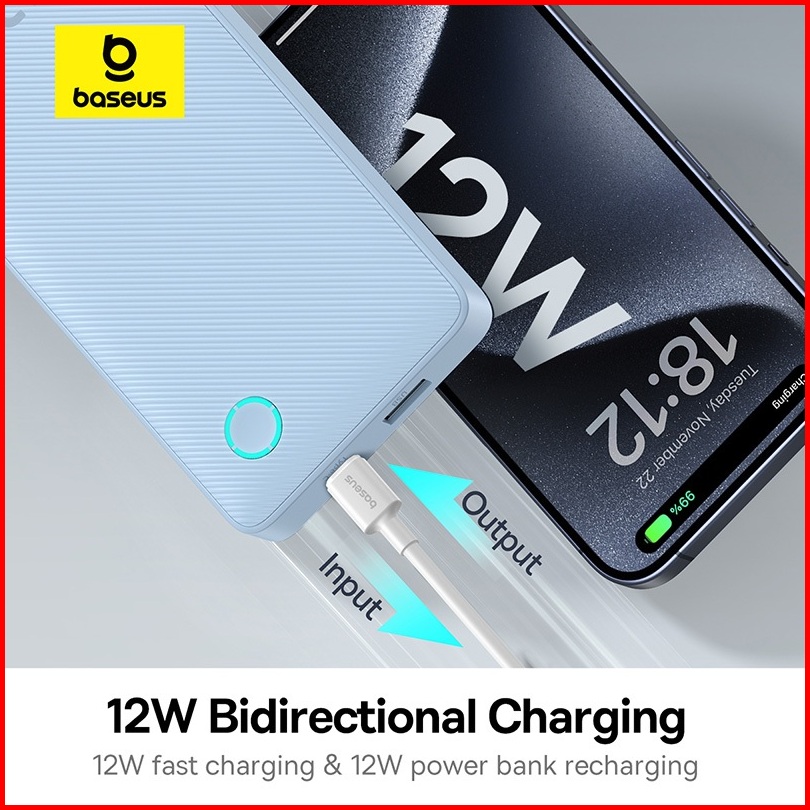 Baseus Powerbank Airpow 10000mah 12w Fast Charging 3a Cable Usb To Type-c Power Bank - Garansi 2 Tahun
