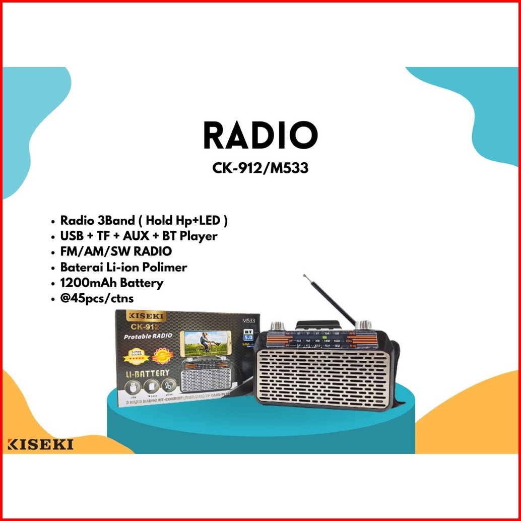 Kiseki Speaker Bluetooth Ck-912 M533 Portable Radio 3band Hold Hp Led