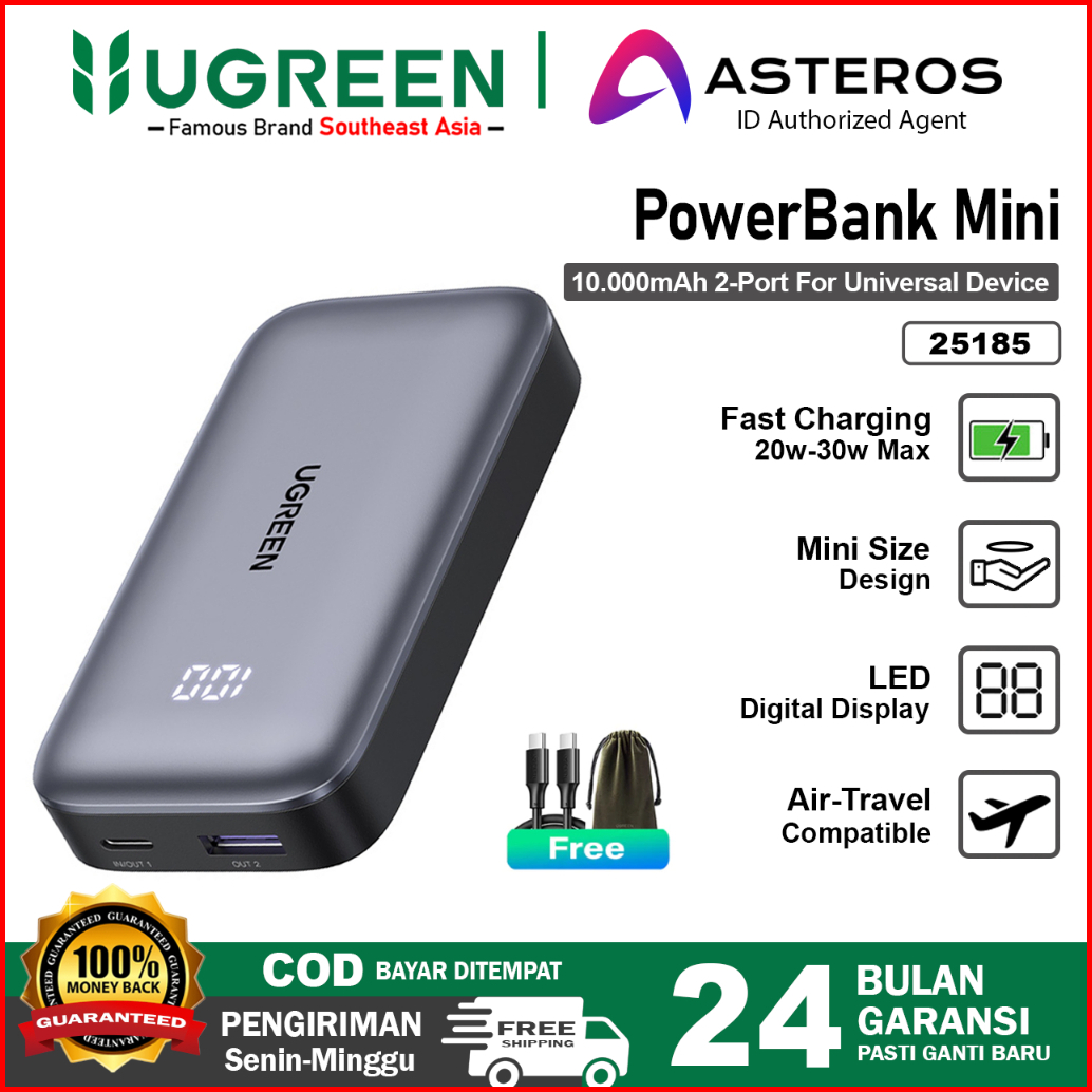 Ugreen Powerbank 10000mah Mini Fast Charging 30w Dual Port Usb C Usb A Pd3.0 25185