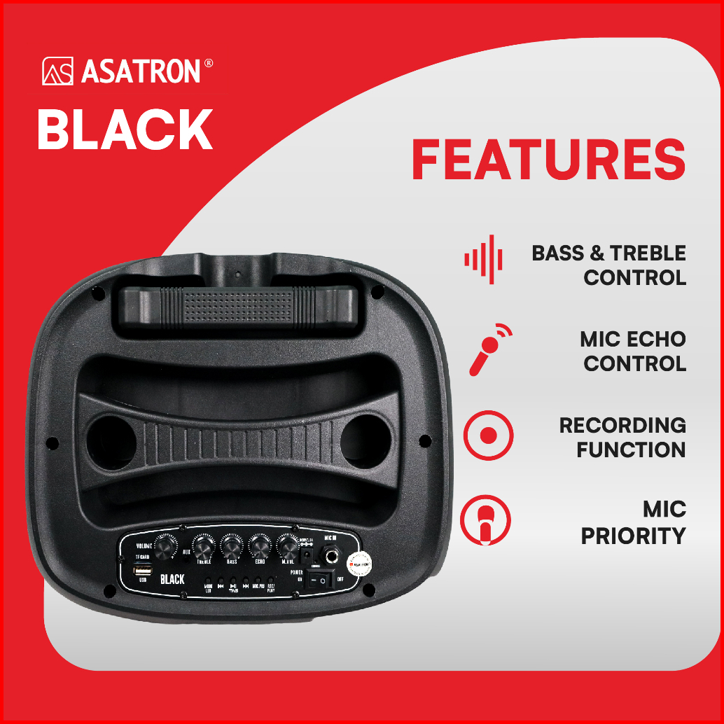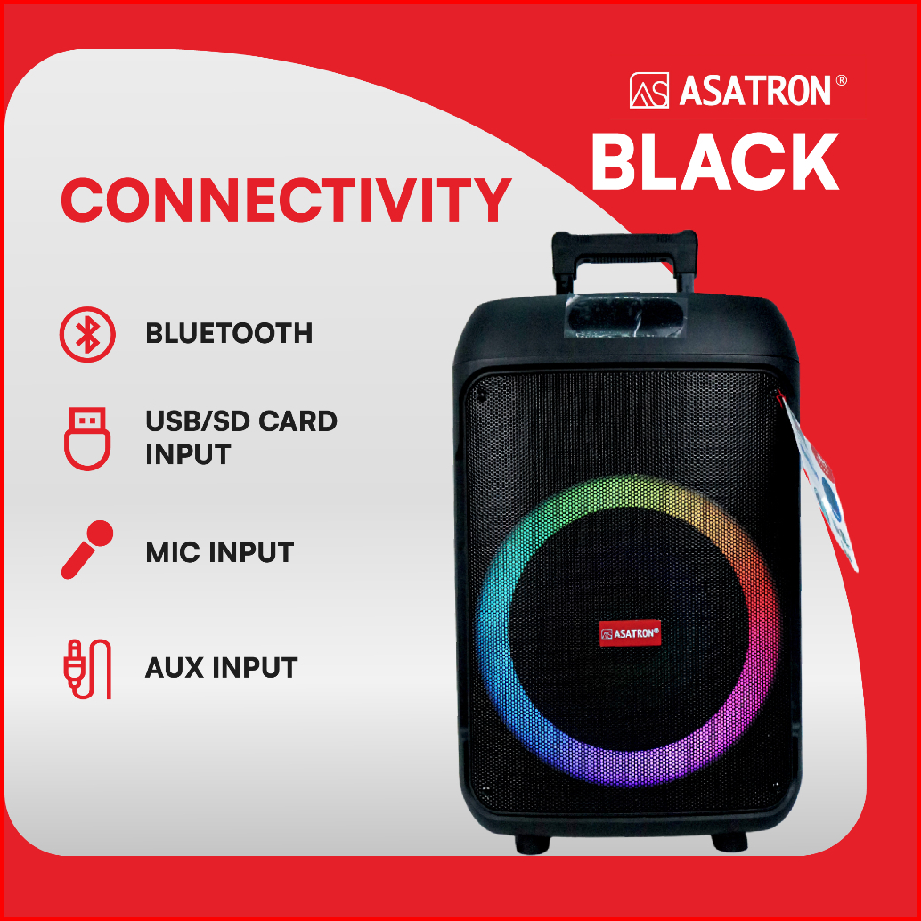 Asatron Black 12 Inch Bluetooth Party Speaker