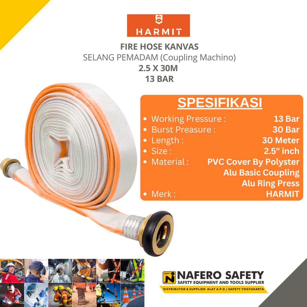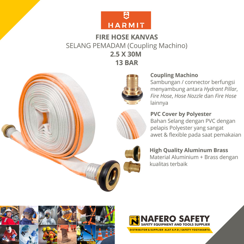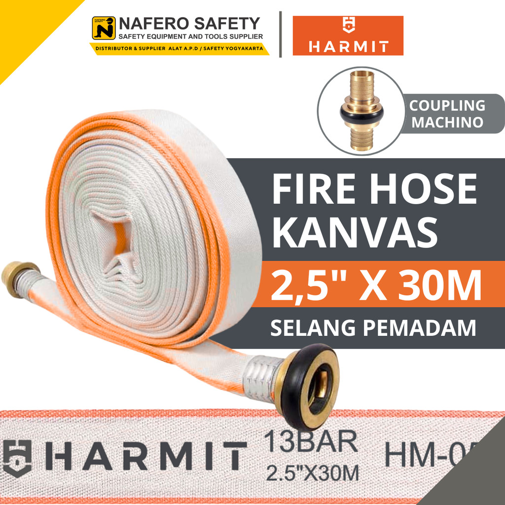 Selang Hydrant Pemadam Fire Hose Kanvas 13BAR 2.5" inch x 30 Meter Coupling Machino - HARMIT