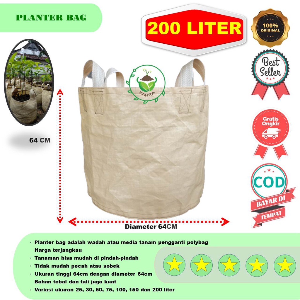 PLANTER BAG KEDIRI KAPASITAS 200 LITER 64 x 64 cm BISA DI PAKAI MEDIA TANAM TABULAMPOT POT BUAH