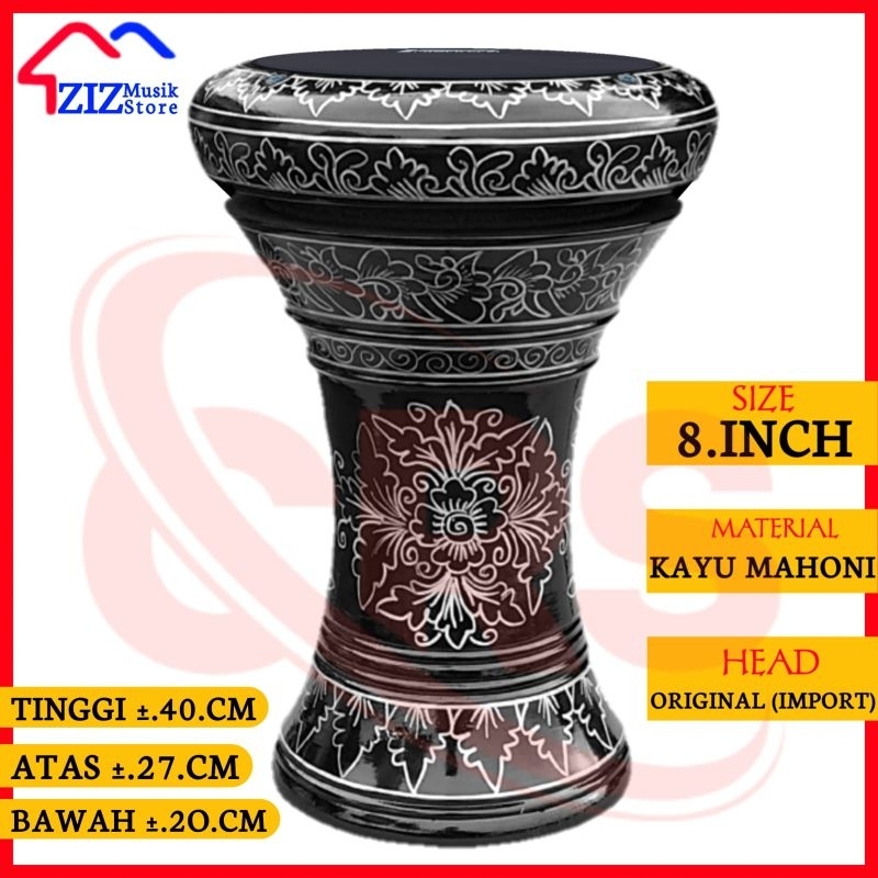 Darbuka Kayu 6 & 8 Inch Motif Batik Head Putih Atau Hitam