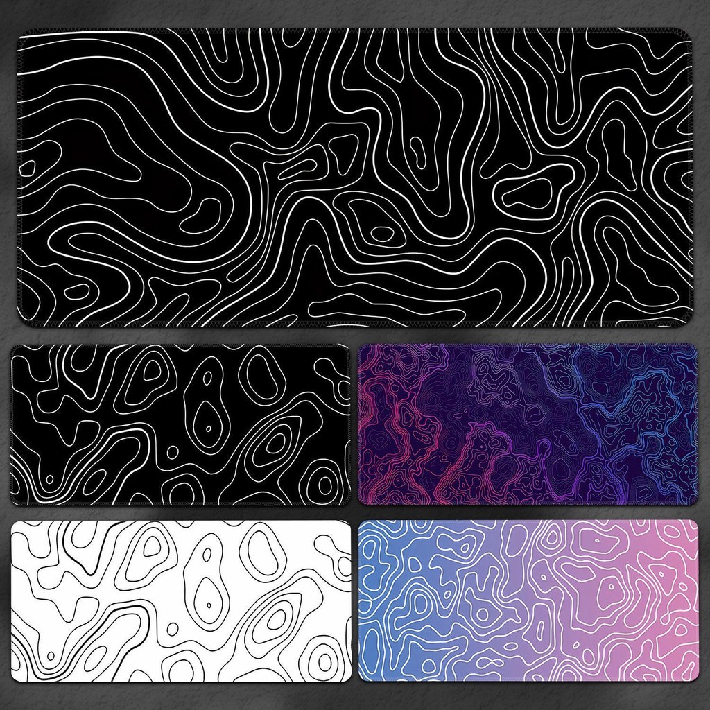 Contour Line Contour Line Mouse Pad Gaming Contour Line Aesthetic Desain Garis Hitam Putih Minimalis DeskMat Besar 80x30