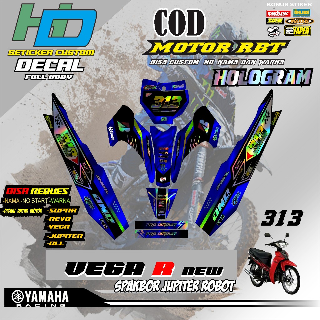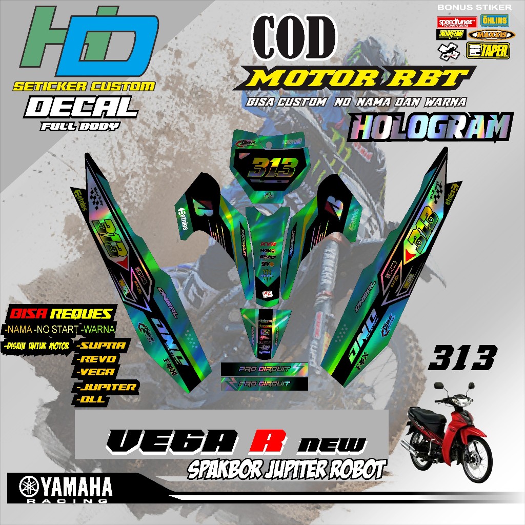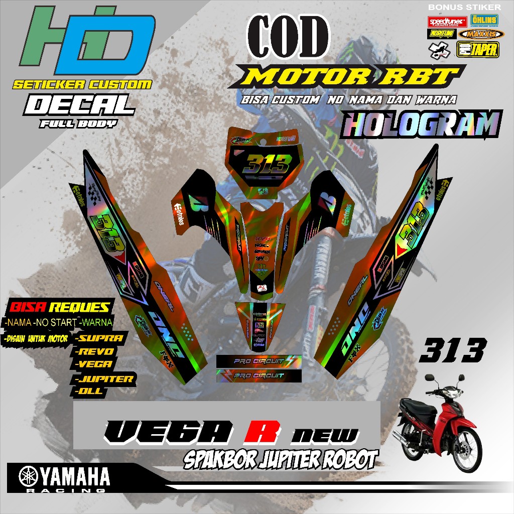 STICKER DECAL HOLOGRAM RBT MOTOR VEGA R NEW FULL BODY TERBARU MOTOR BEBEK TERVIRAL TERMBOIS TERKECE HD V 313