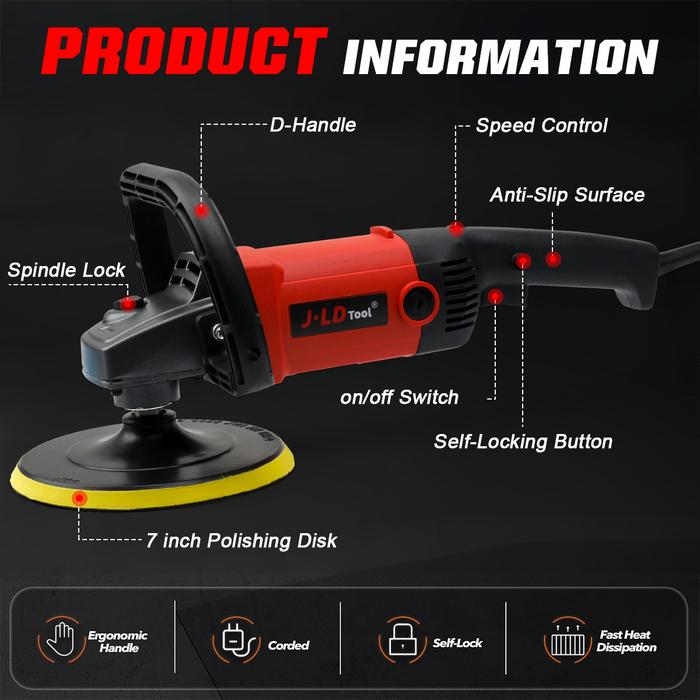 JLD Angle Polisher 7INCH Mesin Poles 6-Speed Diameter 180mm Rotary Car Buffer Polisher