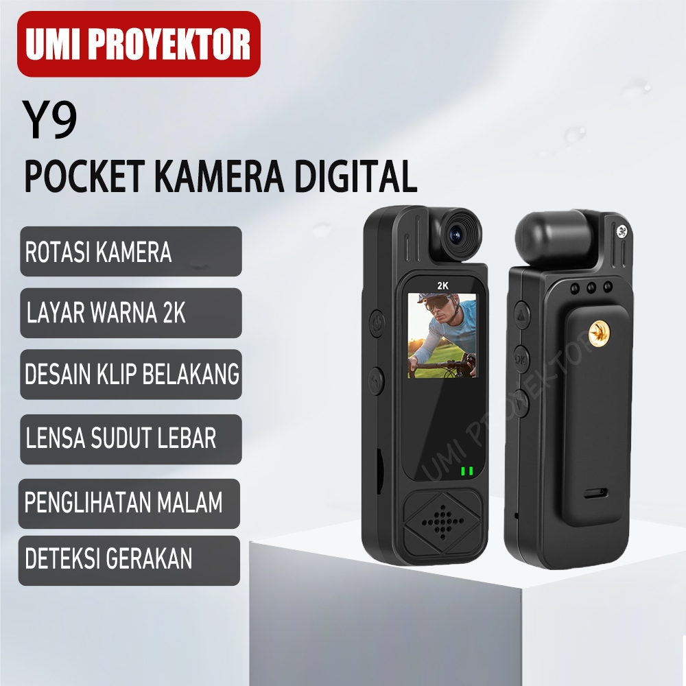 [Bebas 32G SD]UMI HD 2K Mini Kamera Camcorder Layar 1.3" Dapat Diputar 180° Portabel Clip-On Perekam Video Digital Recorder Infrared Night Vision Kecil Motion Detection