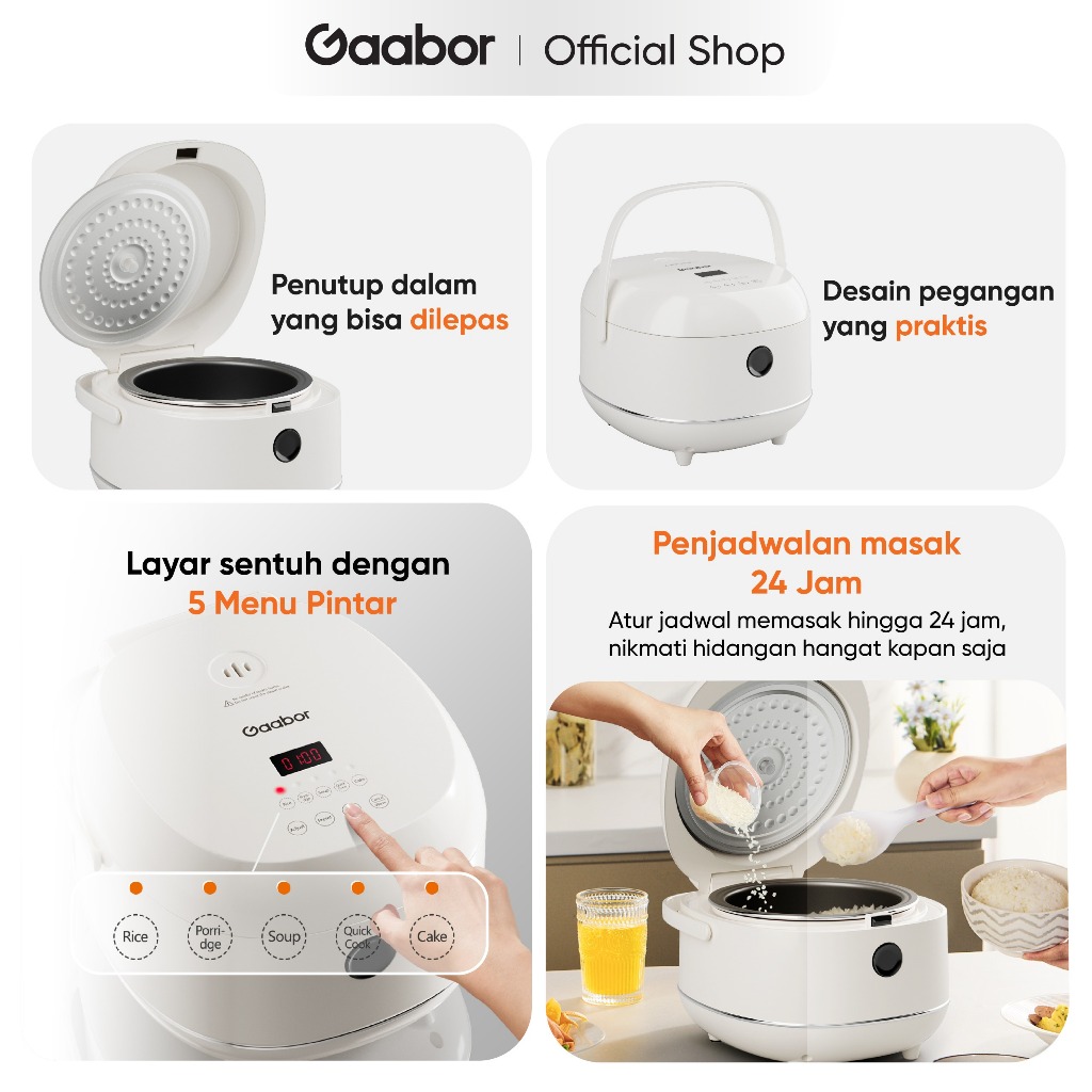 Gaabor Rice Cooker 1.2L Magic Com Anti Lengket Low Watt 500W dengan 5 Menu Pintar / RC-30T01A