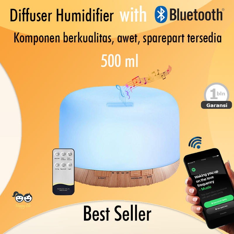 Humidifier Diffuser Bluetooth Aroma terapi Musik Disfuser Aromaterapi Remote Garansi Kayu 500 ml