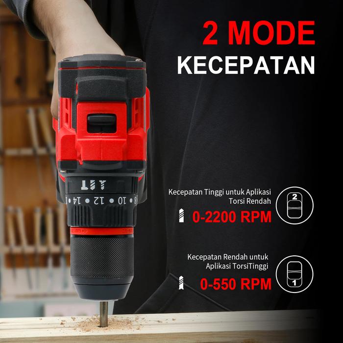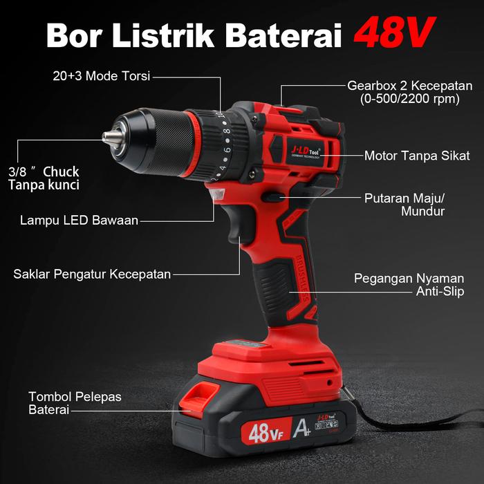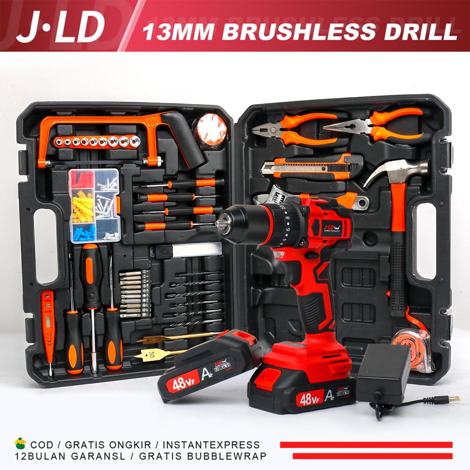 JLD Brushless Mesin Bor Baterai 13MM Cordless Impact Drill Set 48VF Bor Listrik Kotak Peralatan Multifungsi