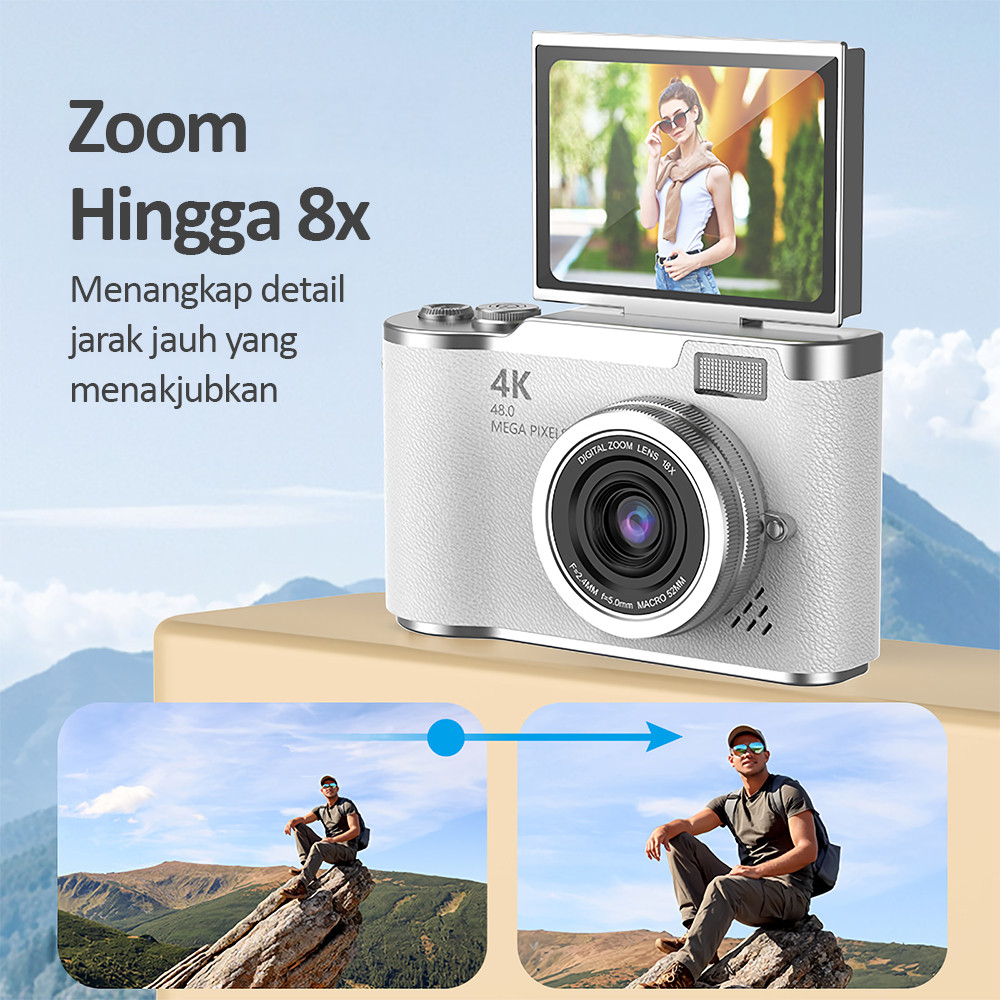 【Free 64G】Kamera Digital 48MP 8X Zoom Kamera Digicam Layar Balik 180° LCD 2,4 Inci 4K Vlog Anti Goyang Filter Kamera Pocket