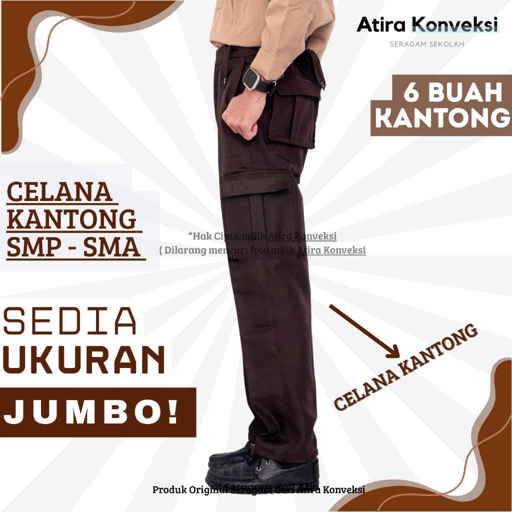 CELANA PRAMUKA PDL KANTONG KARGO RAPILO ( 6 KANTONG ) - SMP SMA PEMBINA ( SEDIA UKURAN JUMBO )