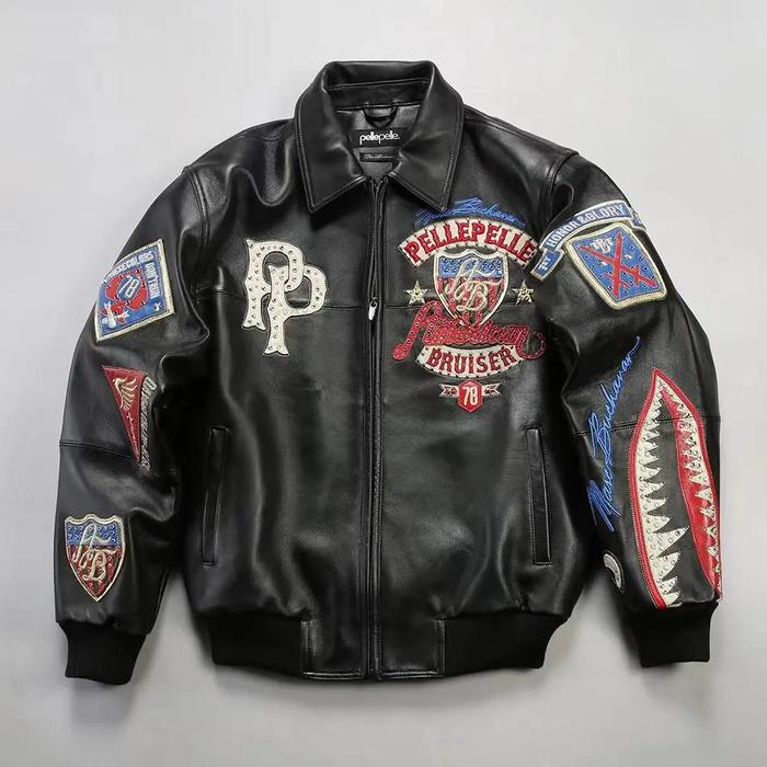 US SIZE MEN'S HIP HOP SHEEP SKIN VARSITY JACKET EMBROIDERED DIAM0ND CLASSIC CASUAL SPORT GENUINE LEATHER COAT TOPS