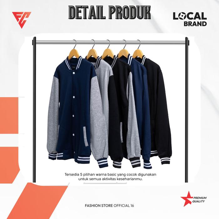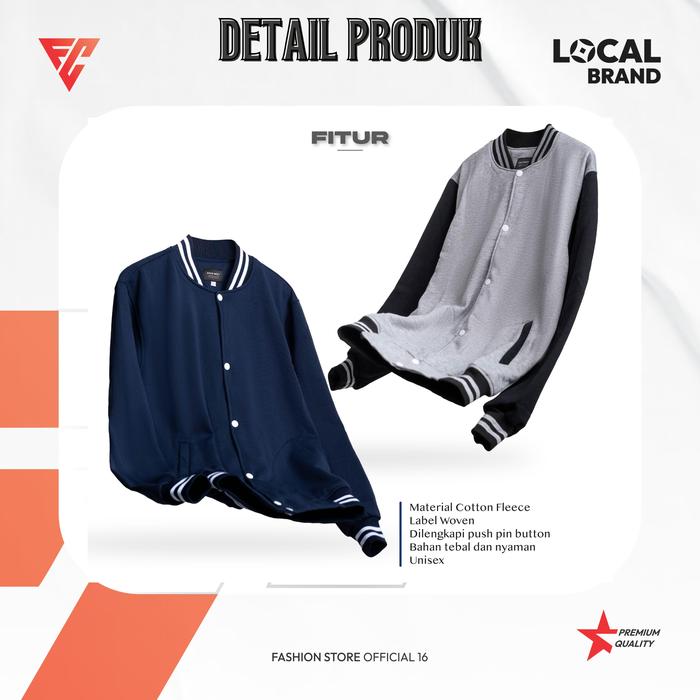 JAKET VARSITY PRIA JAKET BASEBALL PRIA JAKET FLEECE CASUAL COWOK PREMIUM - BLACK GREY, L