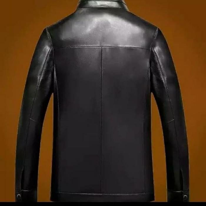 JAKET KULIT CASUAL PRIA POLOS HITAM JAKET KULIT GARUT FLO-63
