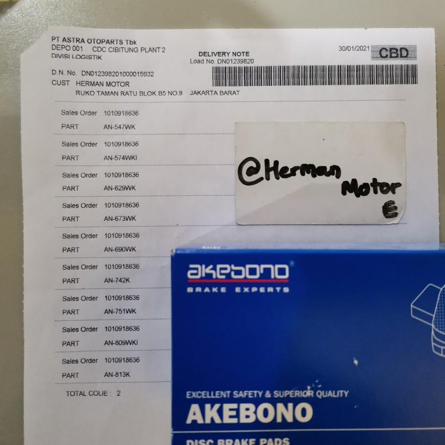 Kampas rem depan Brake Pad Akebono AN-742k Toyota Sienta NAV1 Voxy Noah, New Corolla Altis , Wish Original