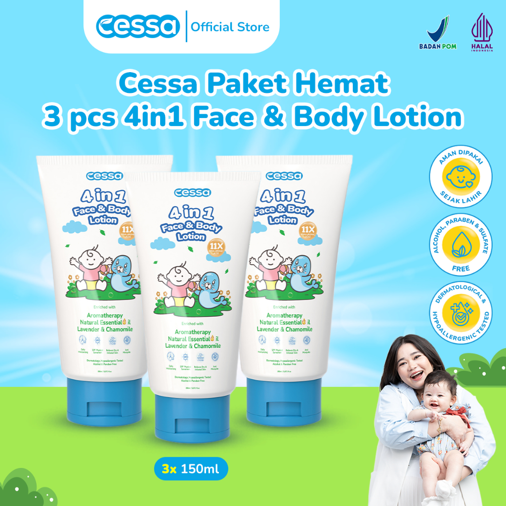Cessa Paket Hemat 3 Pcs 4in1 Face & Body Lotion Melembabkan & Menyehatkan Kulit Sih Kecil