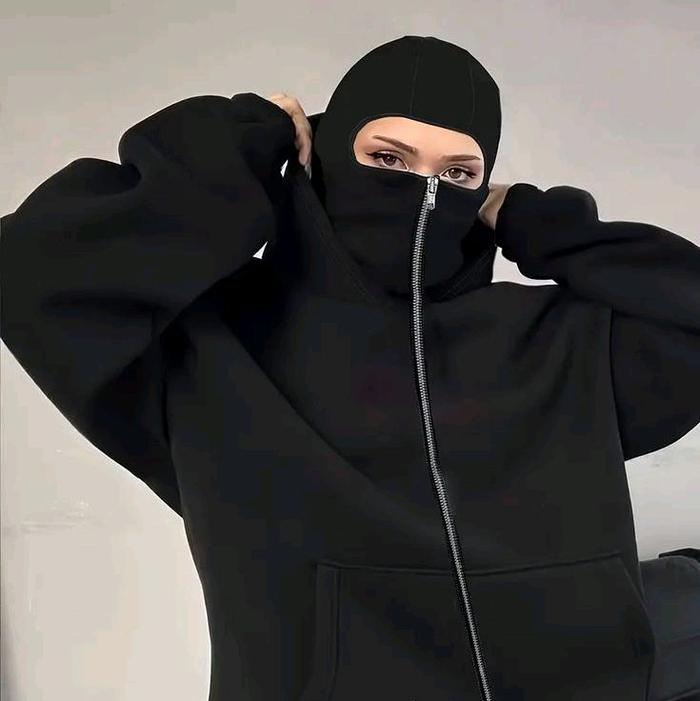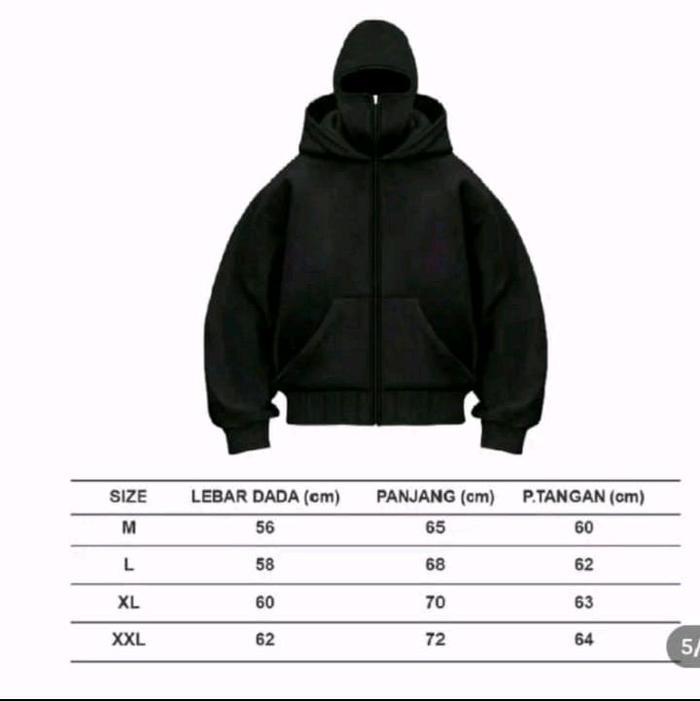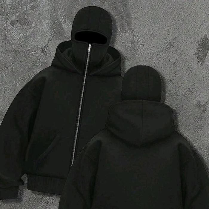 JAKET NINJA BOXY BALACLAVA ZIPPER PREMIUM - HITAM, M