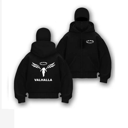 HOODIE BALACLAVA VALHALLA UNISEX METAL ZIPPER JAKET BOXY HITAM UKURAN M-XL JAKET MASKER - VALHALLA, M
