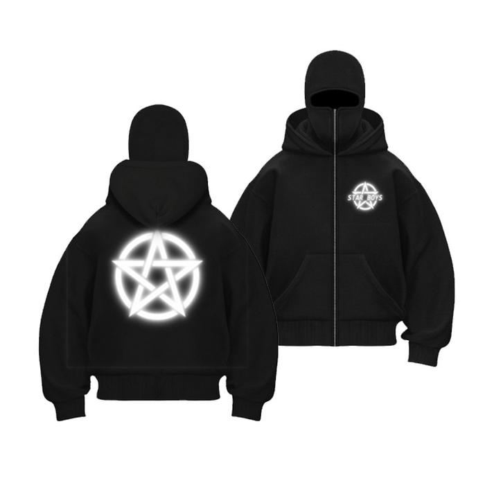 HOODIE BALACLAVA UNISEX METAL ZIPPER JAKET BOXY HITAM TERLARIS STARBOY - GAMBAR 1, M